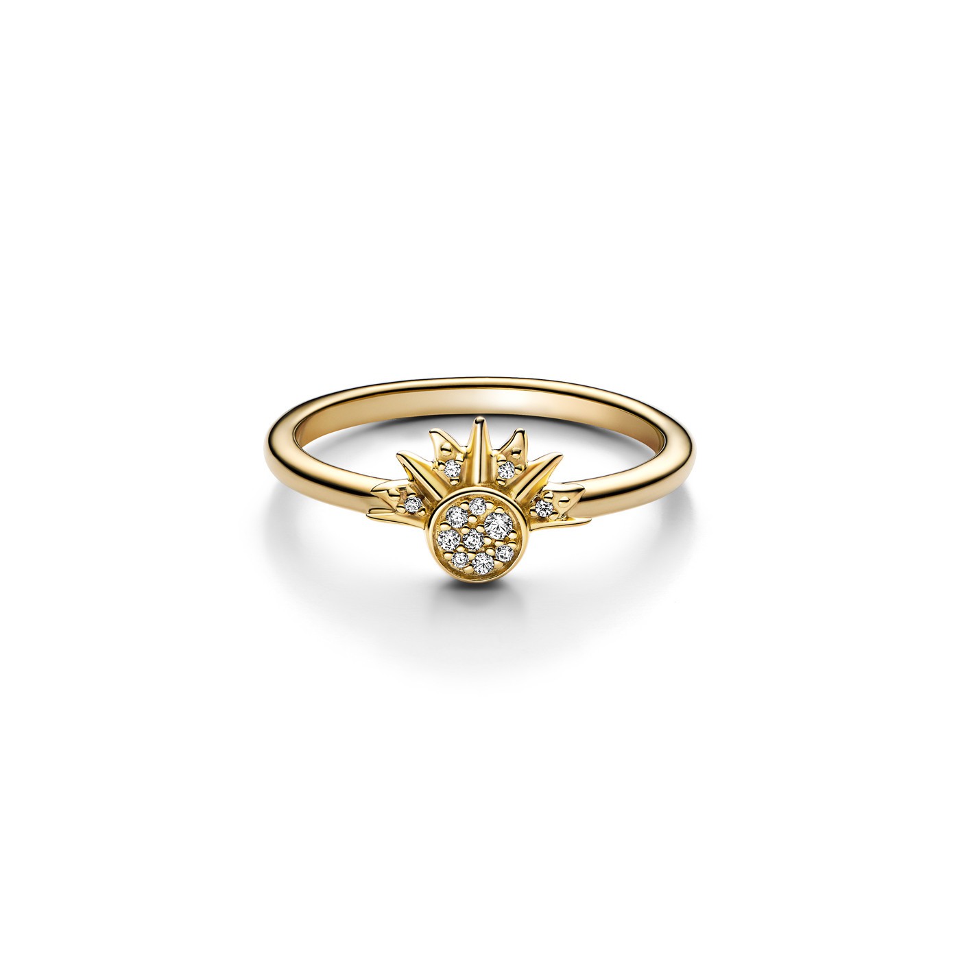 Anillo Pandora Sol Celestial Dorado 162674C01, una joya que ilumina tu estilo con su diseño inspirado en el sol. Fabricado en plata de ley con baño de oro de 14k y circonitas blancas, este anillo es perfecto para quienes buscan transmitir energía positiva y luz en su día a día. Combínalo con el modelo 192675C01 para un look radiante. Es un regalo ideal para esa persona especial que siempre te inspira y te llena de alegría, simbolizando calidez, optimismo y nuevos comienzos.