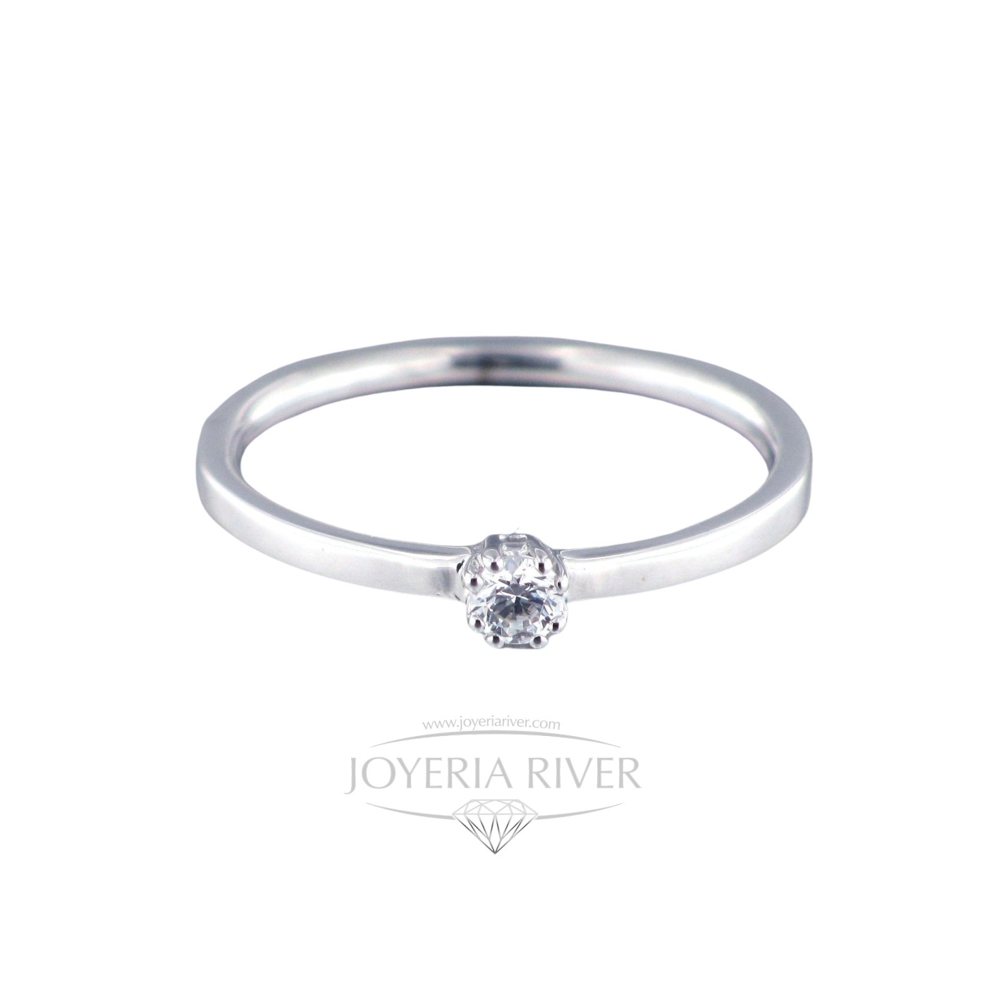 Sortija en oro blanco con un peso de aproximadamente 1.9gr, tiene 1 diamante en talla brillante con un peso total de 0.10ct. en calidad H-SI. Tiene 2 años de garantía y se envía con un certificado de autenticidad de la sortija.