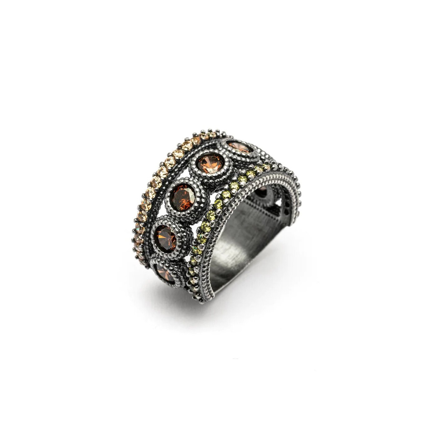 El Anillo Raive Circonitas Marrones y Verdes 15554 es la elección perfecta si buscas un toque de color y elegancia en tu día a día. Su diseño combina circonitas marrones y verdes, creando un contraste único que resalta en cualquier ocasión. Llévalo solo o combínalo con tus accesorios favoritos para un look moderno y sofisticado.
