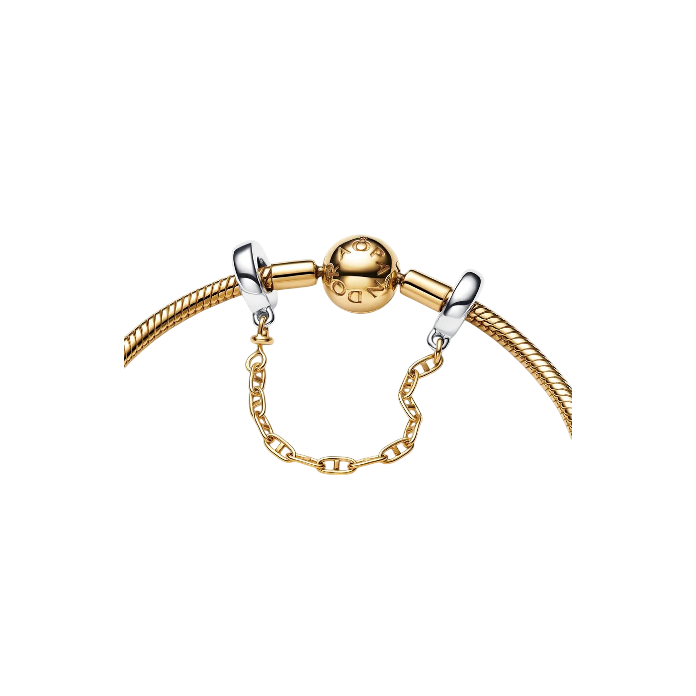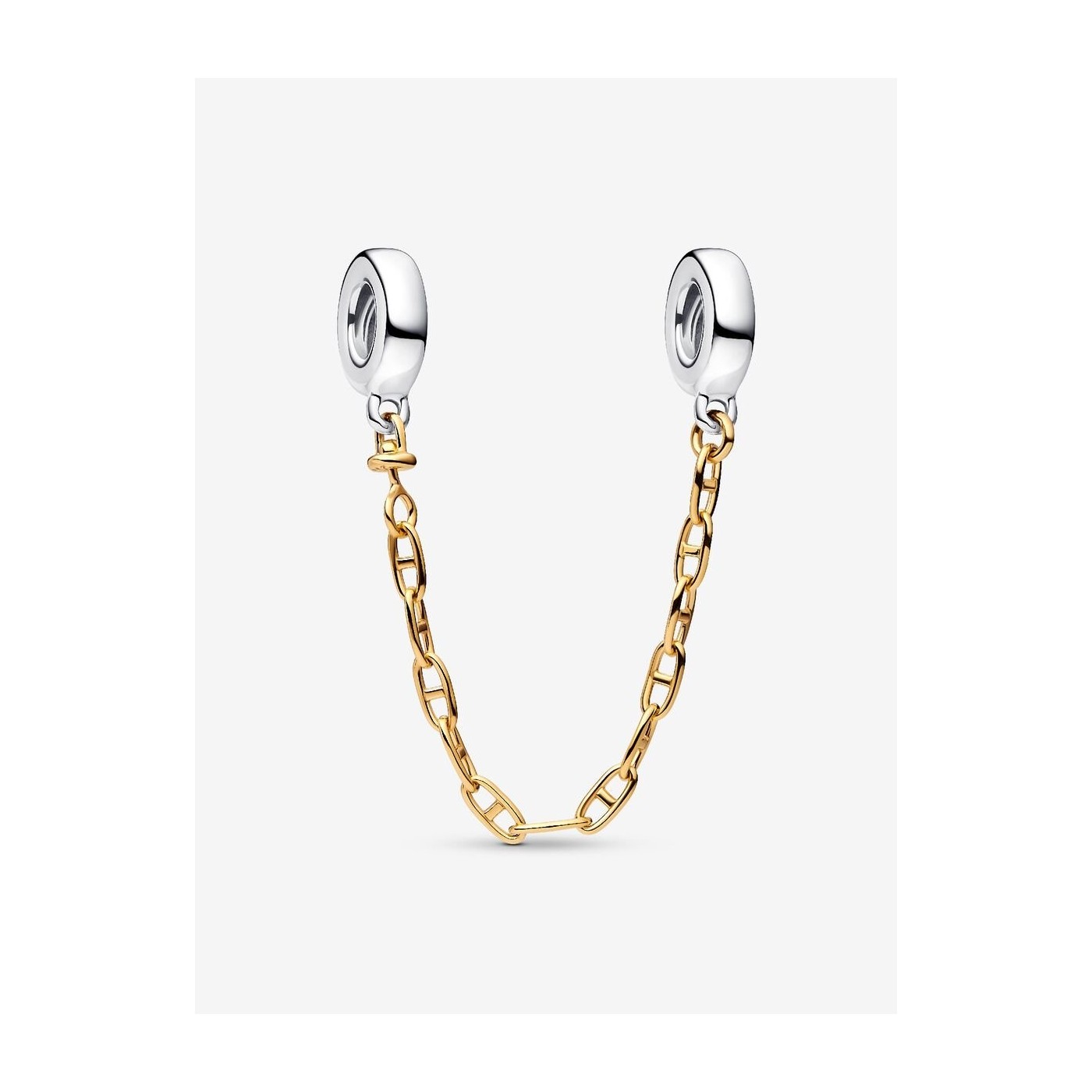 La Cadena Seguridad Pandora Alargada 763904C00 combina la elegancia de la plata con un recubrimiento en oro de 14 quilates, creando un diseño sofisticado y funcional. Este abalorio Pandora es ideal para quienes valoran la seguridad y el estilo en su pulsera, ya que protege tus charms favoritos y añade un toque de distinción. Es un regalo perfecto para esa persona especial que aprecia los detalles y el significado de cada pieza, como símbolo de protección y cariño.
