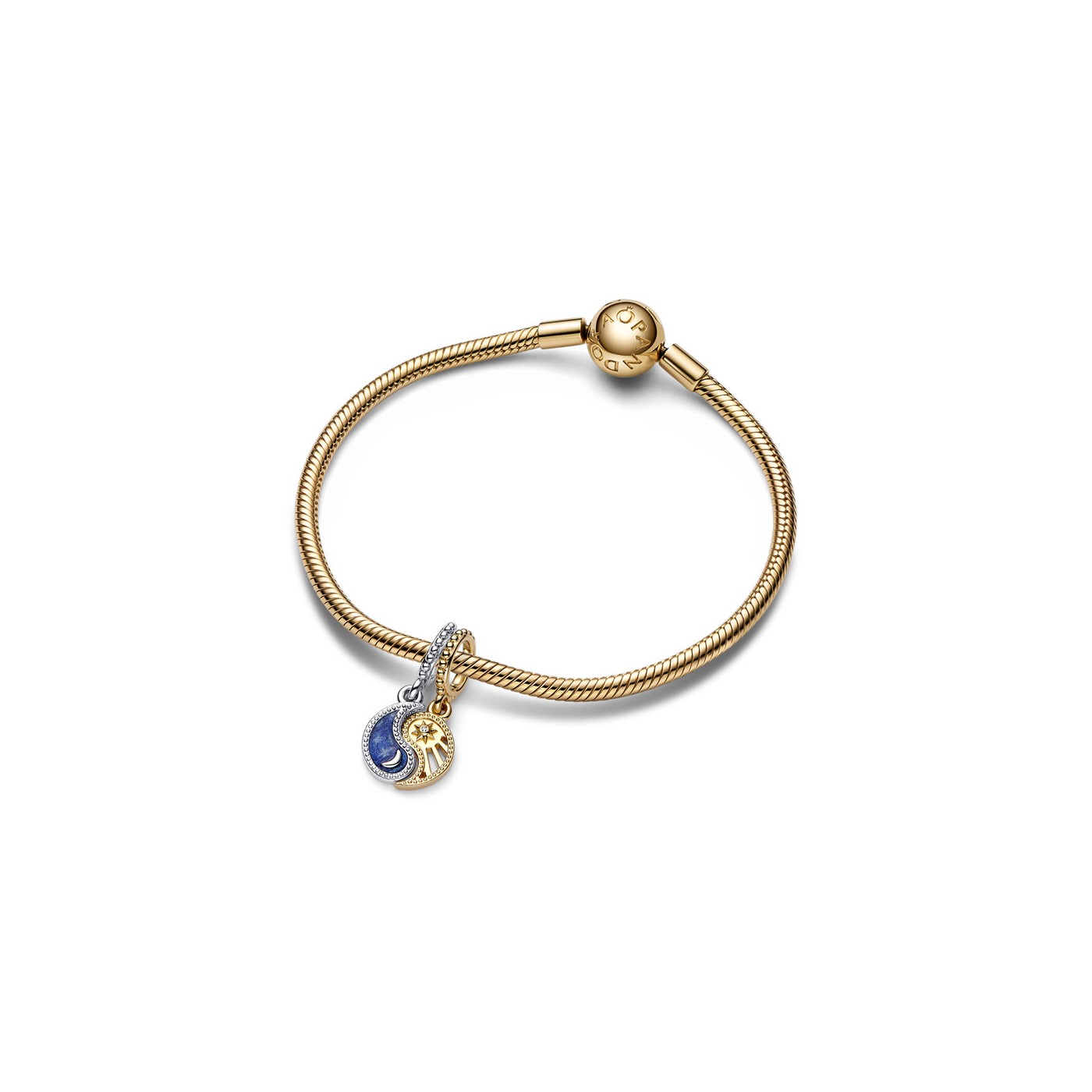 Charm Colgante Pandora Sol& Luna 762678C01, un abalorio pandora en plata de ley con recubrimiento en oro de 14 kt, combina la energía del sol y la serenidad de la luna en una sola pieza de dos tonos. Es el detalle perfecto para quienes buscan equilibrio y armonía en su vida. Regálalo a esa persona especial que ilumina tus días y te acompaña en cada etapa, como símbolo de unión y dualidad.
