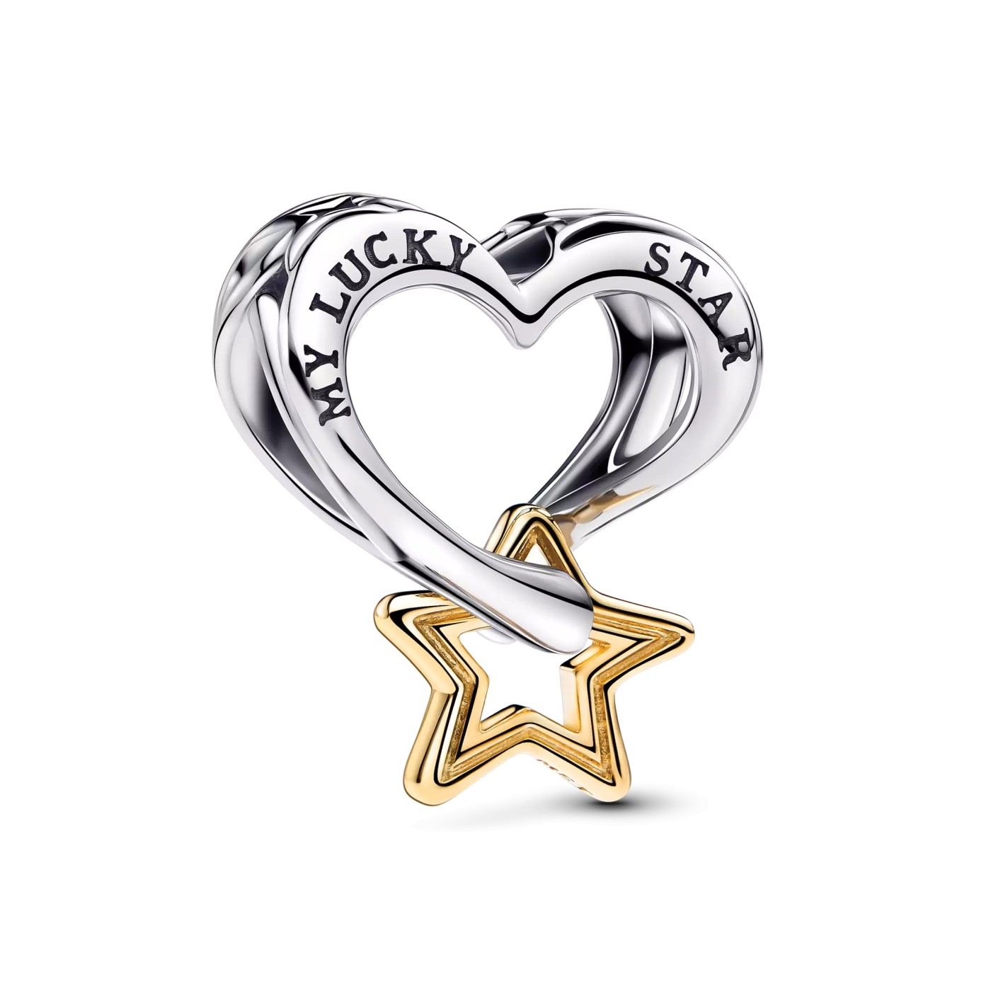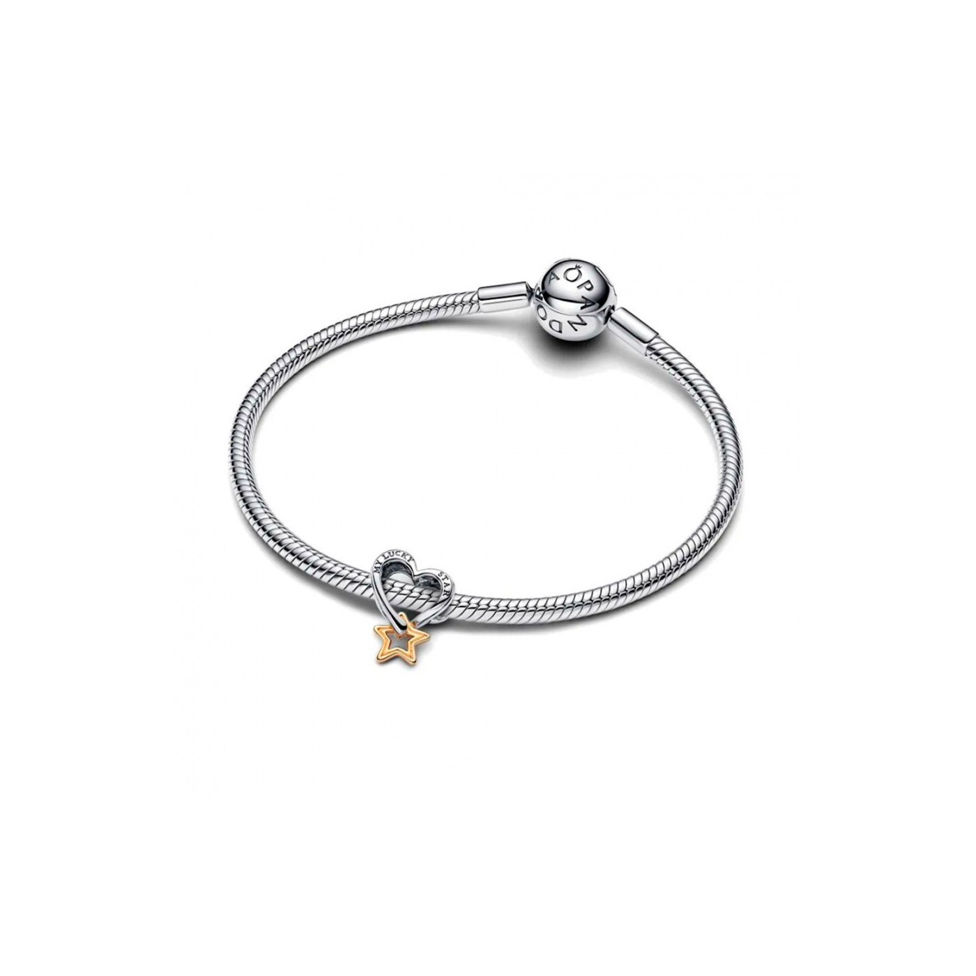 El Charm Estrella y Corazón de la Suerte 763513C00 combina la elegancia de la plata con un delicado baño de oro, y lleva grabada la frase "mi estrella de la suerte". Este abalorio pandora es perfecto para quienes buscan atraer buena fortuna y recordar siempre a esa persona especial que ilumina su vida. Regálalo a alguien que necesite un impulso de energía positiva o a quien consideres tu amuleto de la suerte; será un detalle lleno de significado y cariño.