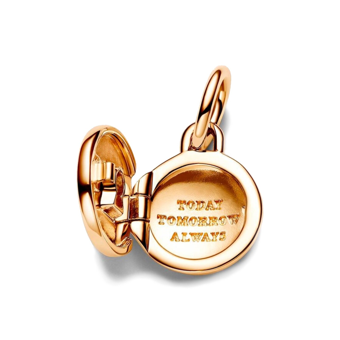 Charm Pandora Colgante Medalla Grabable que se abre 763066C01 es el abalorio pandora perfecto para llevar tus recuerdos más cerca de ti. Fabricado en plata con un elegante baño dorado, este charm te permite grabar un mensaje especial en su interior. Es un regalo ideal para esa persona que valora los momentos únicos y quiere llevarlos siempre consigo, como una amiga cercana, tu pareja o un familiar querido. Personaliza este abalorio pandora y haz que cada día tenga un significado especial.
