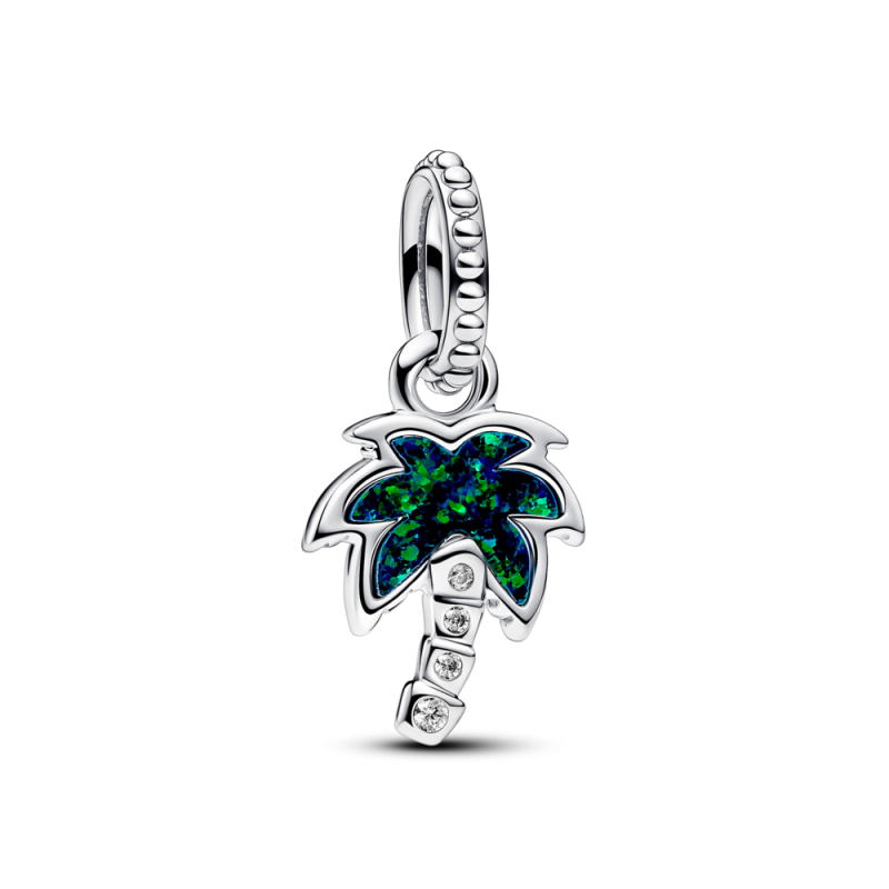 Charm Pandora Colgante plata Palmera Verde Opalescente 793352C01: un abalorio pandora que captura la esencia de la naturaleza y el espíritu aventurero. Su diseño en plata de ley y detalles en verde opalescente lo convierten en el complemento perfecto para quienes sueñan con destinos exóticos y aman la libertad. Es un regalo ideal para esa persona especial que disfruta viajar, explorar nuevos lugares o simplemente quiere llevar un pedacito de paraíso en su pulsera.