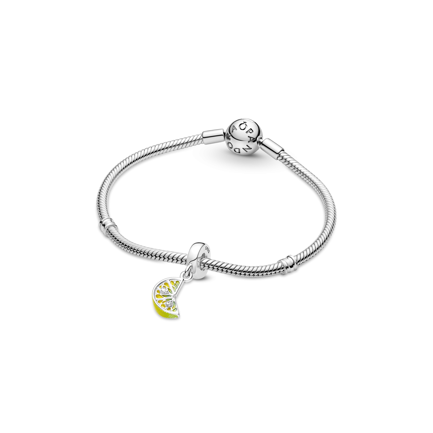 Charm Pandora Colgante plata Rodaja de Limón Brillante 791696C01: un abalorio pandora lleno de frescura y color, elaborado en plata de ley con circonitas y esmaltes en tonos amarillo, verde y verde lima. Este charm es perfecto para quienes disfrutan de los pequeños placeres de la vida y buscan añadir un toque vibrante a su pulsera. Regálalo a esa persona que siempre ve el lado positivo y sabe cómo exprimir cada momento al máximo.