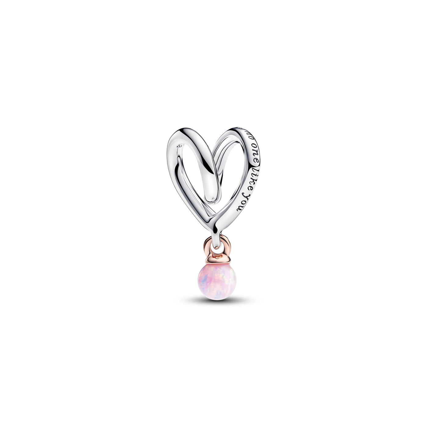 El Charm Pandora plata y rosa Corazón Dos Tonos 783242C01 es un abalorio pandora elaborado en plata de ley y recubierto en oro rosa de 14k, con la frase "No hay nadie como tú mamá" grabada en su diseño. Este charm es el detalle perfecto para recordarle a tu madre lo especial que es y lo mucho que significa para ti. Regálaselo a esa mamá única en tu vida y haz que lleve siempre cerca un mensaje lleno de amor y gratitud.