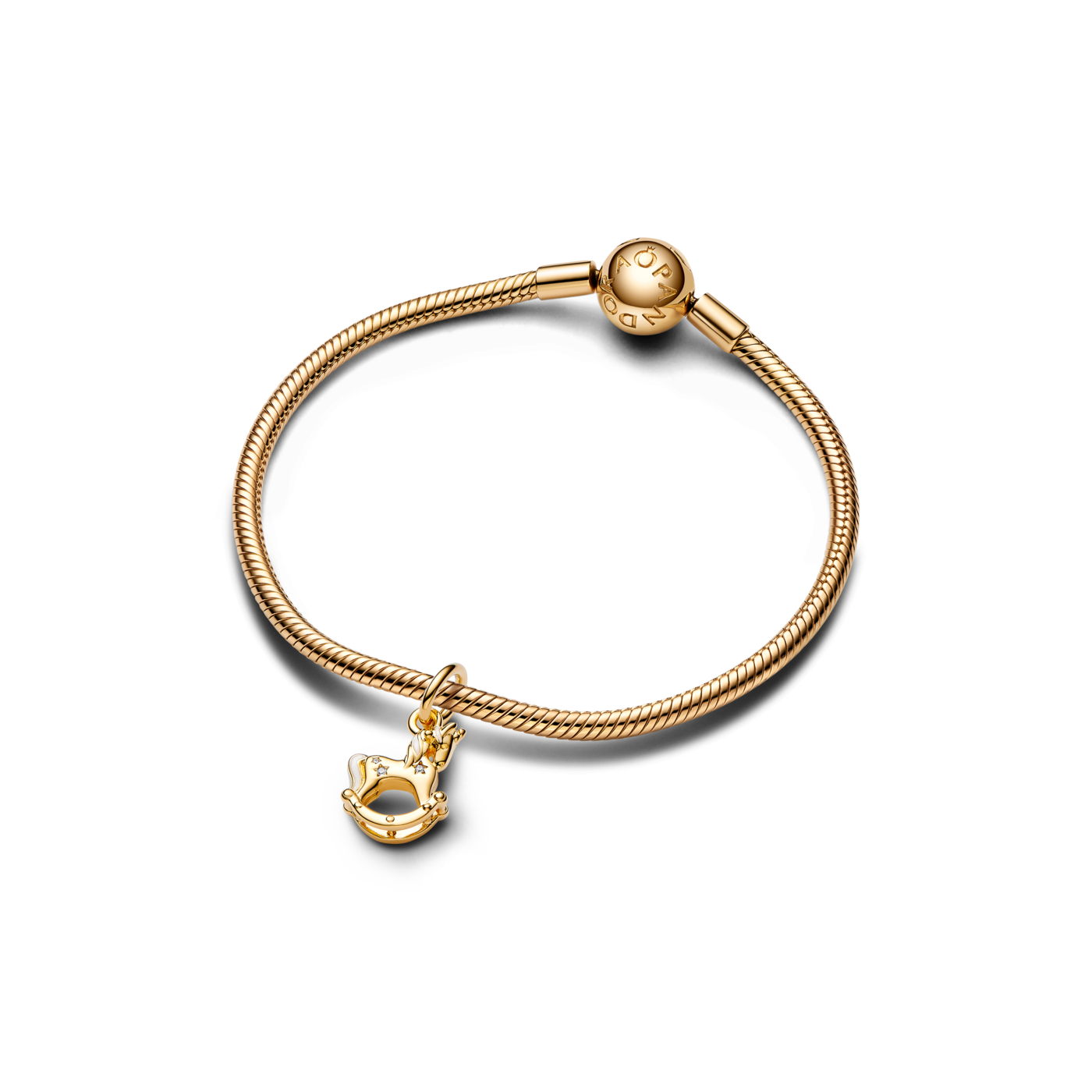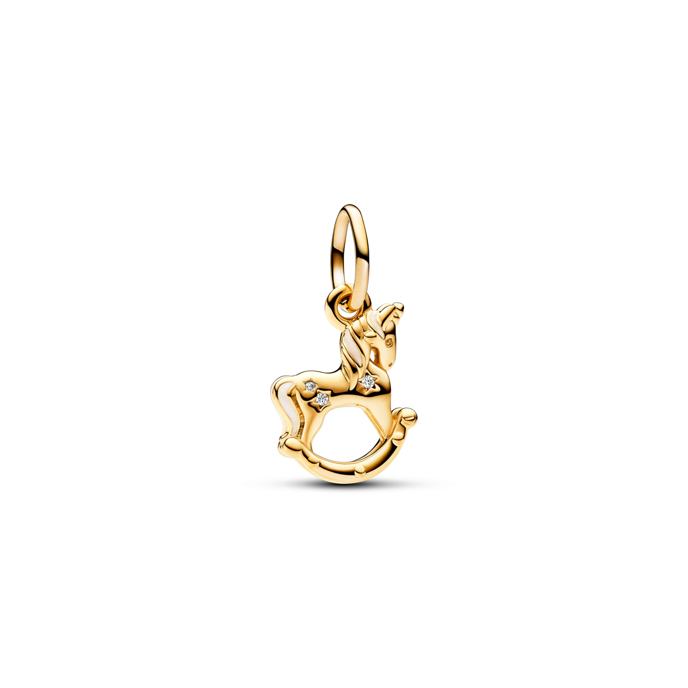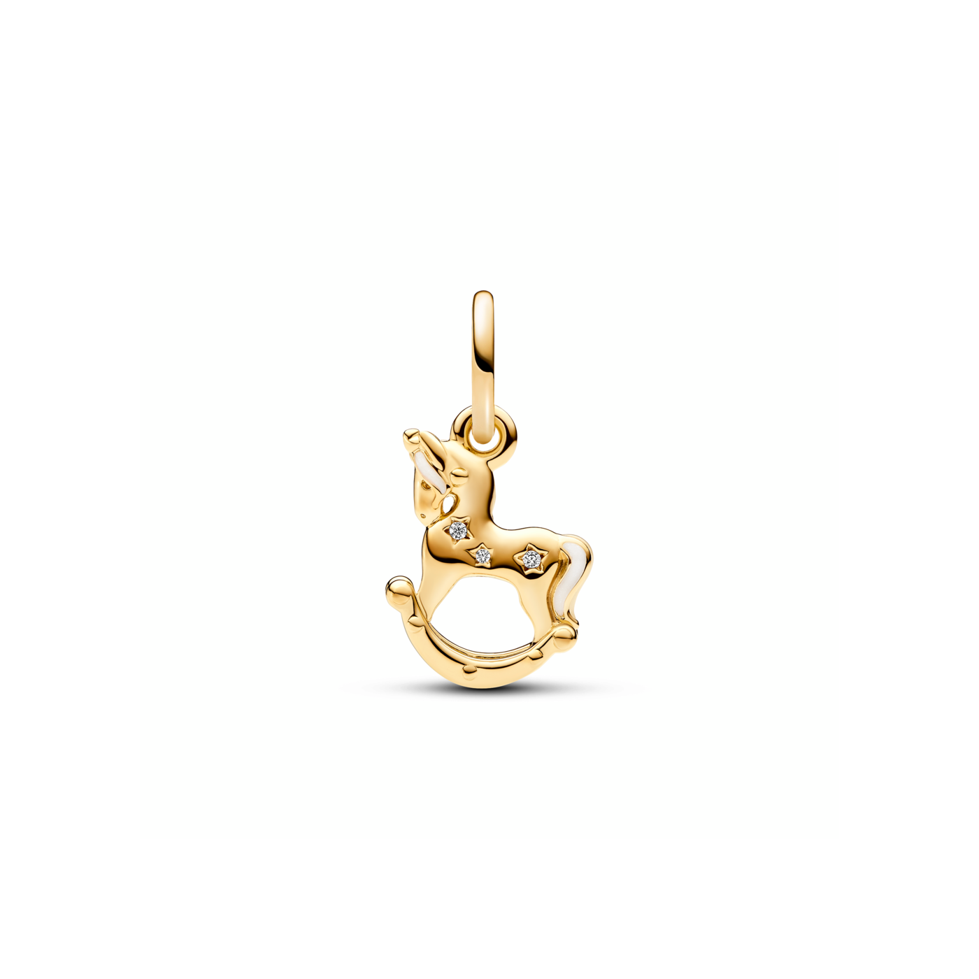 Charm Pandora Unicornio Balancin Dorado 762978C01 es un abalorio pandora lleno de magia y fantasía, elaborado en plata de ley con baño en oro de 14kt, circonitas y esmalte blanco. Este unicornio balancín es perfecto para quienes creen en los sueños y la imaginación, ideal para regalar a personas creativas, soñadoras o amantes de los unicornios. Añade un toque especial y único a tu pulsera con este encantador diseño.
