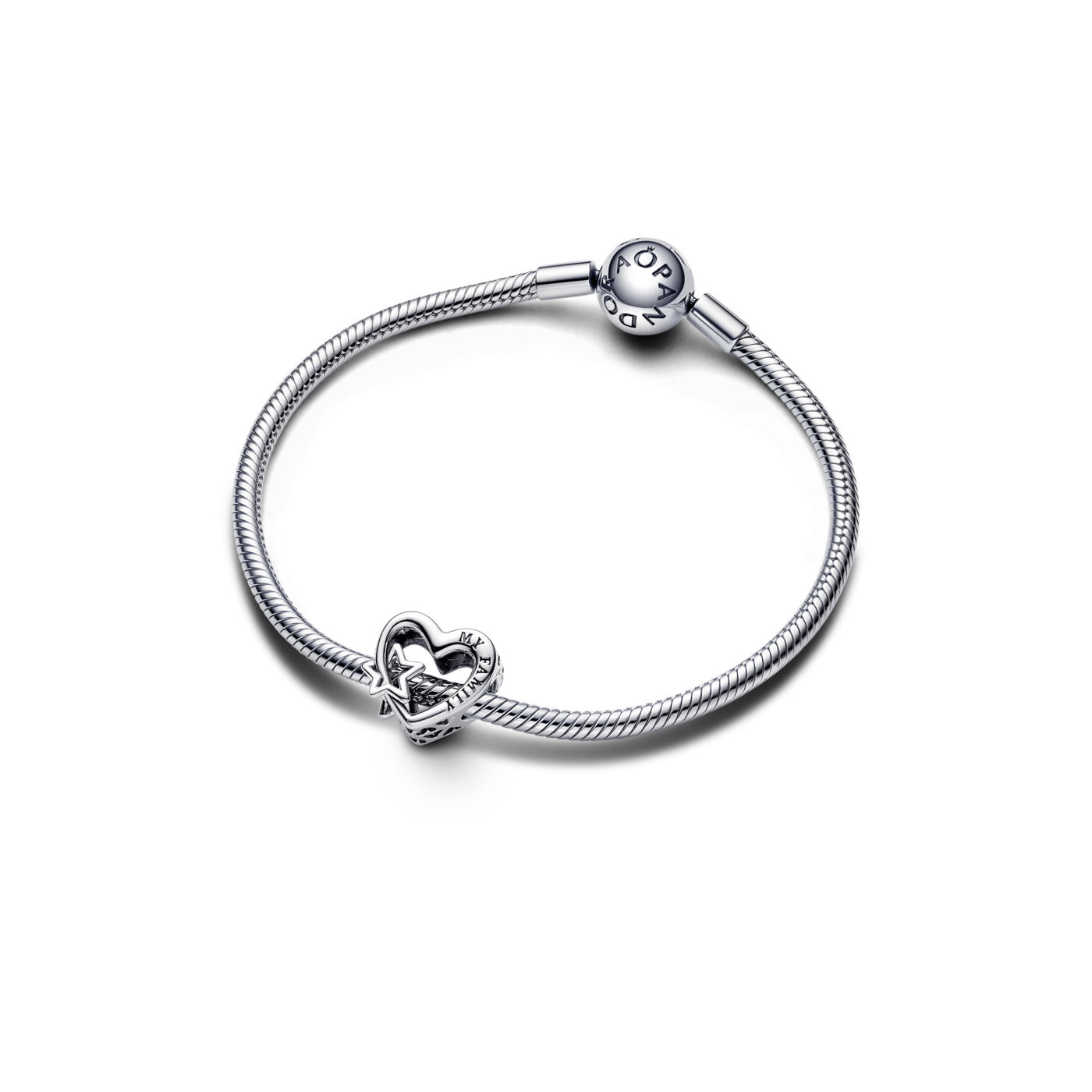 Charm Pandora y Corazón en Filigrana Familia & Estrella 792829C00 es el abalorio pandora perfecto para quienes valoran a su familia por encima de todo. Fabricado en plata de ley, este charm lleva grabado "mi familia" en un lado y "mi universo" en el otro, recordando siempre la importancia de los lazos familiares. Regálalo a esa persona especial que considera a su familia su mayor tesoro y haz que lleve siempre cerca el significado de unión y amor incondicional.
