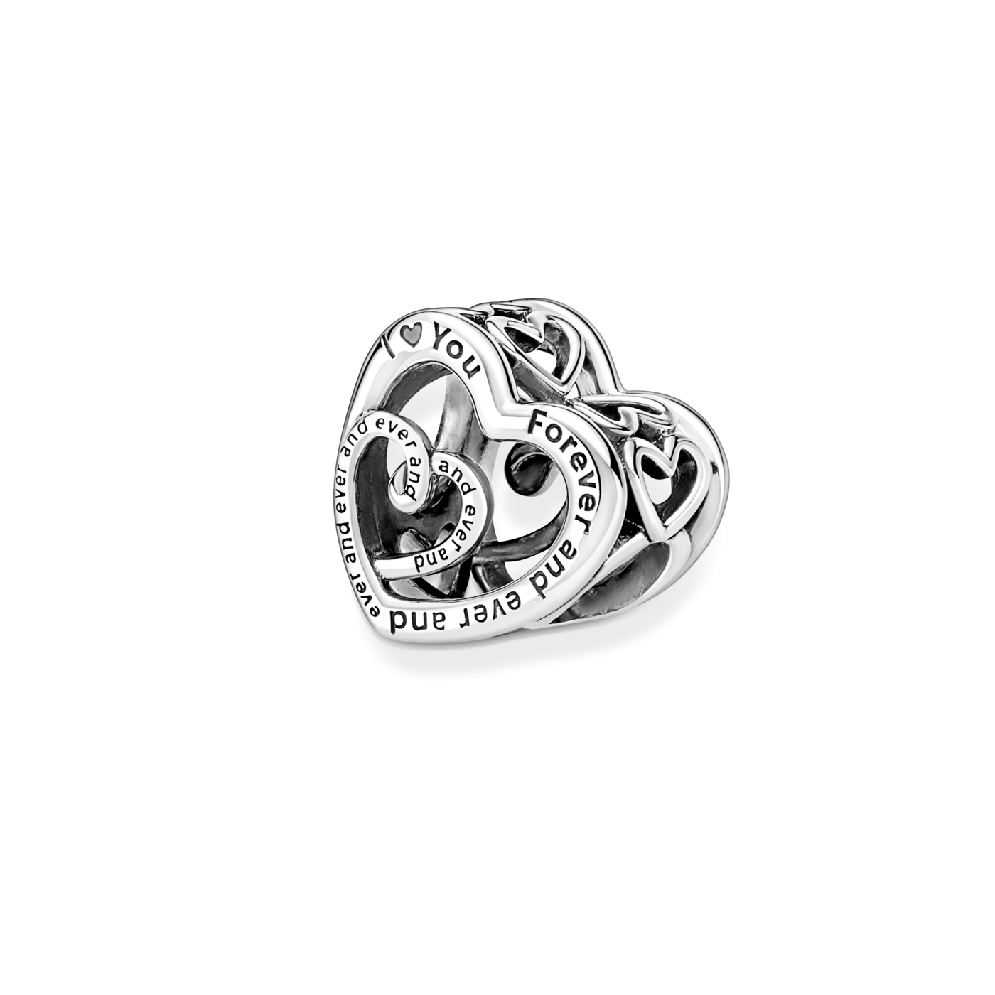 Charm plata Corazones Infinitos Entrelazados 790800C00 es un abalorio pandora en plata de ley con corazones entrelazados y un mensaje grabado: "mom I love you forever and ever" y "mamá te quiero por siempre y para siempre". Este diseño simboliza el amor eterno entre madre e hijo, convirtiéndolo en el regalo perfecto para sorprender a tu mamá y recordarle lo importante que es para ti cada día.