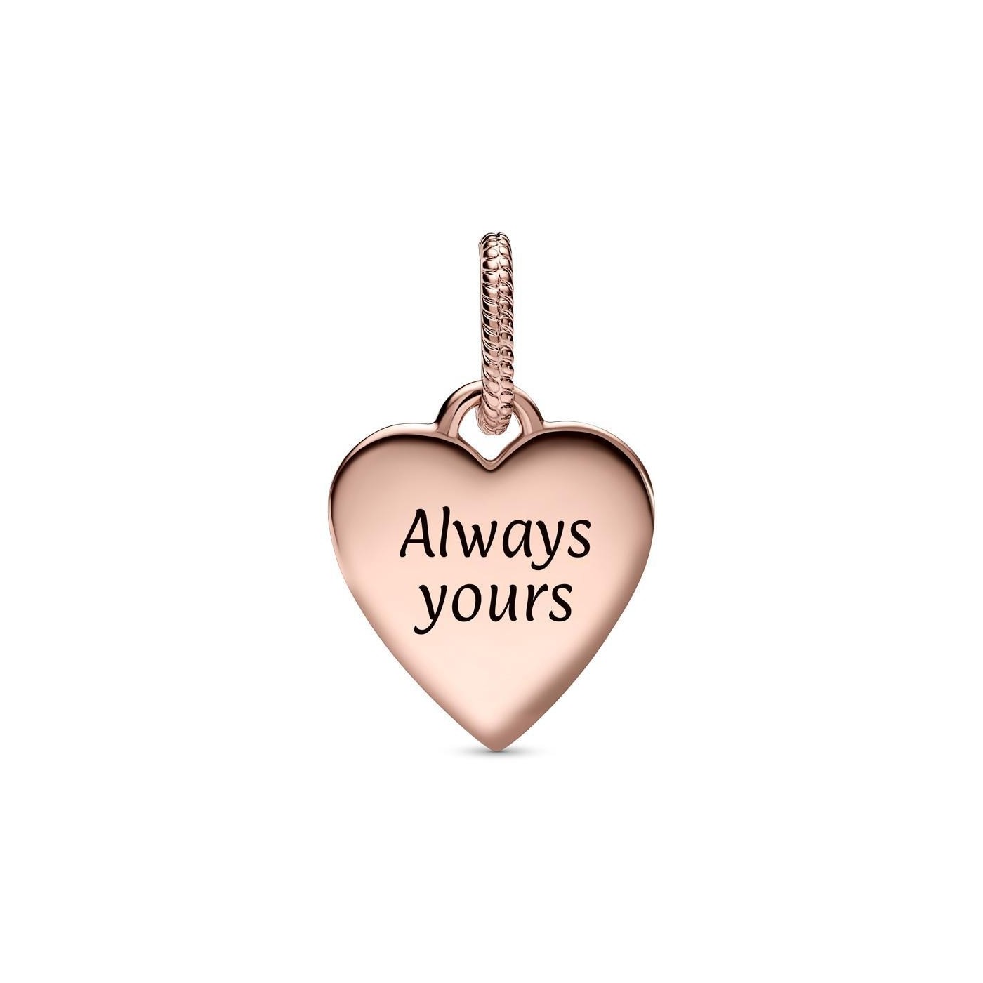 Colgante Etiqueta Corazón Grabable Rosa 388914C00, un abalorio pandora perfecto para expresar tus sentimientos más sinceros. Personalízalo con el mensaje que elijas, ya sea por uno o ambos lados, y hazlo único para ti o para esa persona especial. El precio del grabado está incluido.