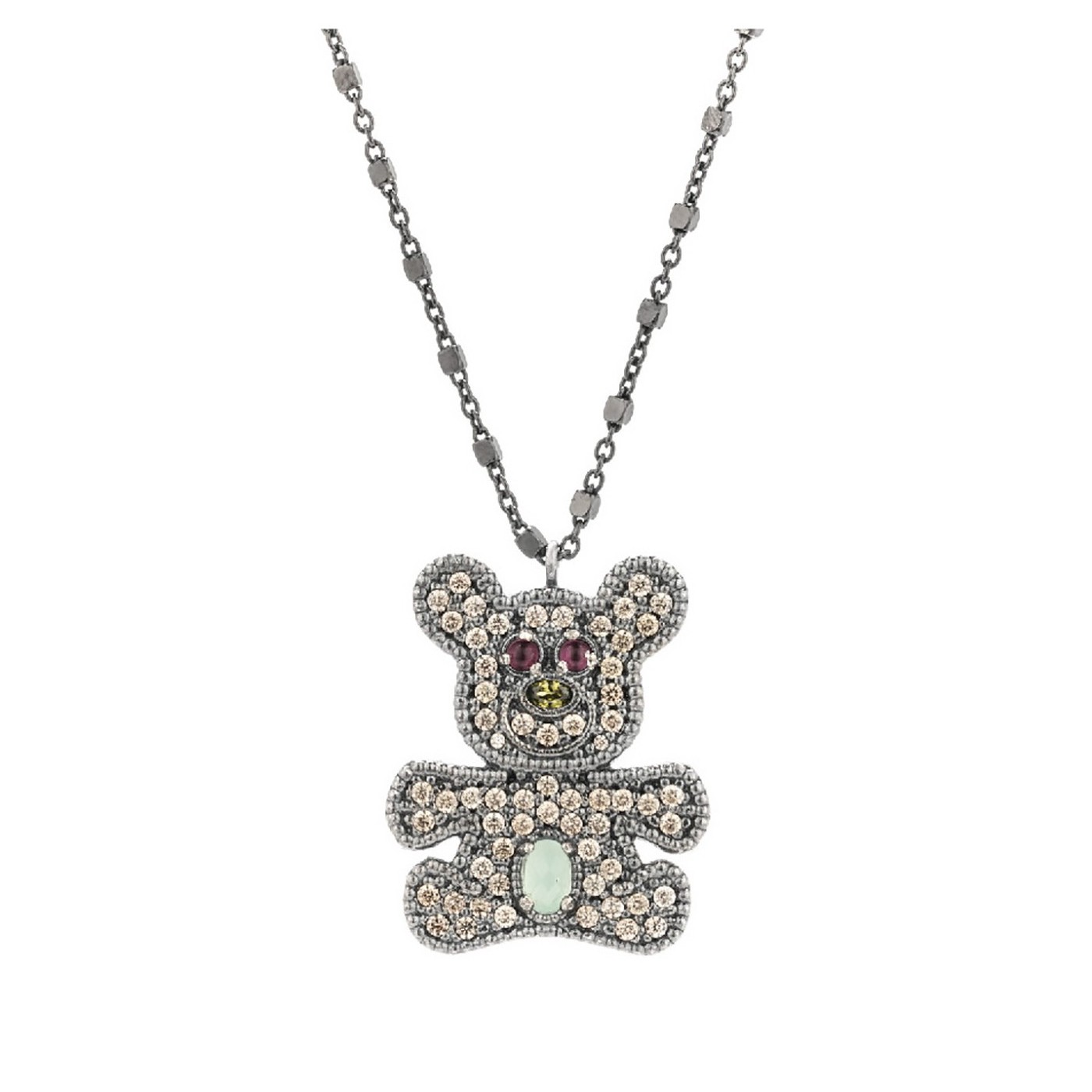 Colgante Raive Oso Circonitas C1008 es una joya única que destaca por su diseño artesanal y su encanto especial. Este colgante de plata en forma de oso está engastado con piedras semipreciosas: calcedonia en el centro y granates en los ojos, además de circonitas cava que aportan un brillo sutil y elegante. Mide 22 mm de ancho por 28 mm de largo e incluye una cadena de plata con baño de rutenio de 45 cm. Elaborado en España, es perfecto para quienes buscan una pieza original y con significado. Si te gustan los animales o quieres sorprender a alguien que los adora, este colgante es el detalle ideal.