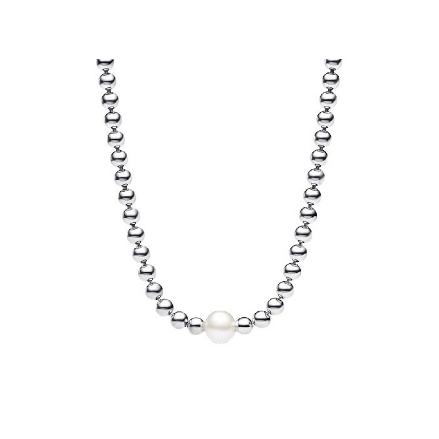 Collar Perla y Cuentas 393176C01 combina la elegancia de una perla cultivada de agua dulce con el brillo de las bolas de plata. Su diseño ajustable te permite adaptarlo a diferentes estilos y ocasiones. Es el regalo perfecto para esa persona especial que valora la belleza natural y la sofisticación en cada detalle.
