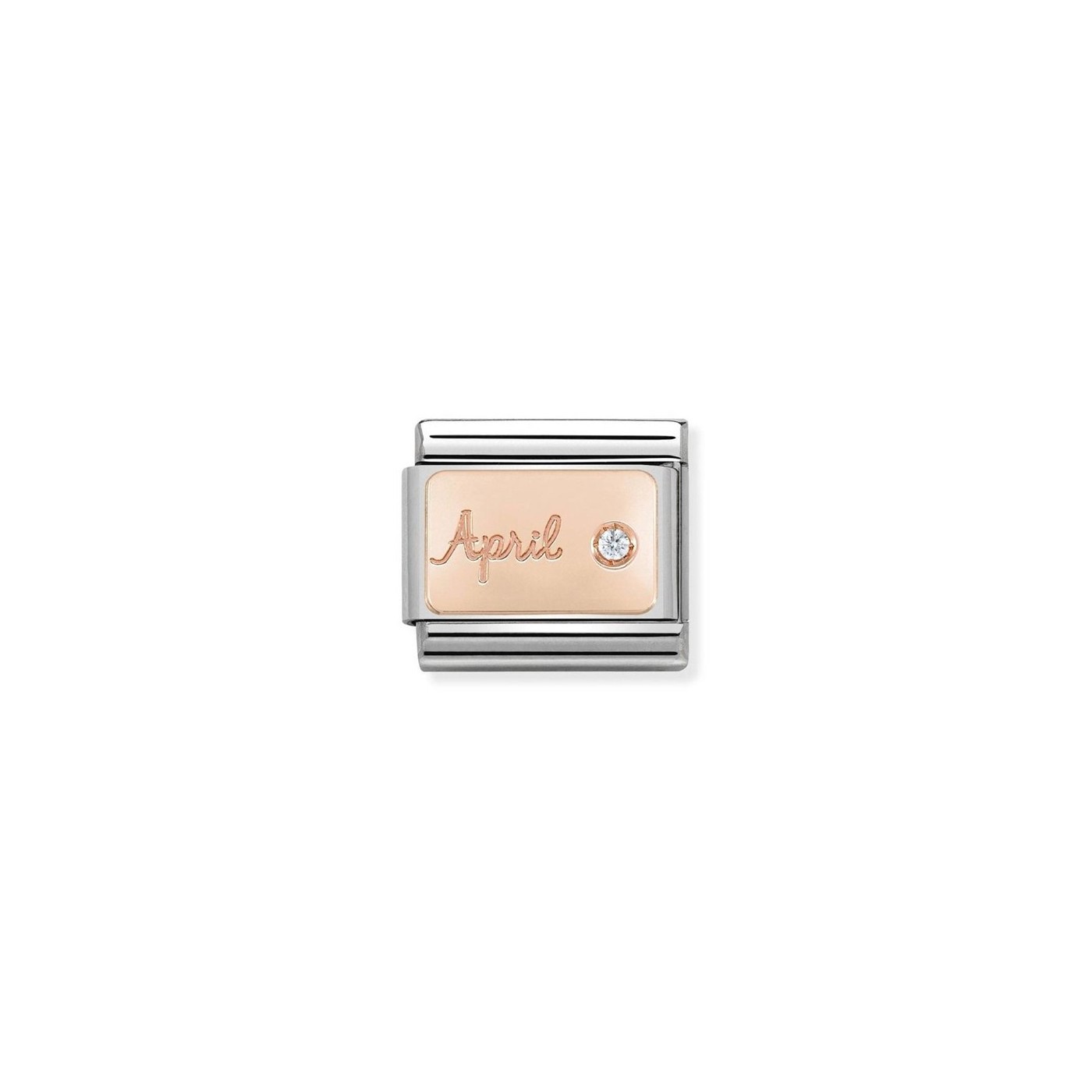 Regala a los que nacieron en el mes de Abril una Pieza original para Pulsera Composable Classic en Acero, Oro rosa 375 y Diamante de 0,05ct. calidad VS . Una idea original completamente Made in Italy.