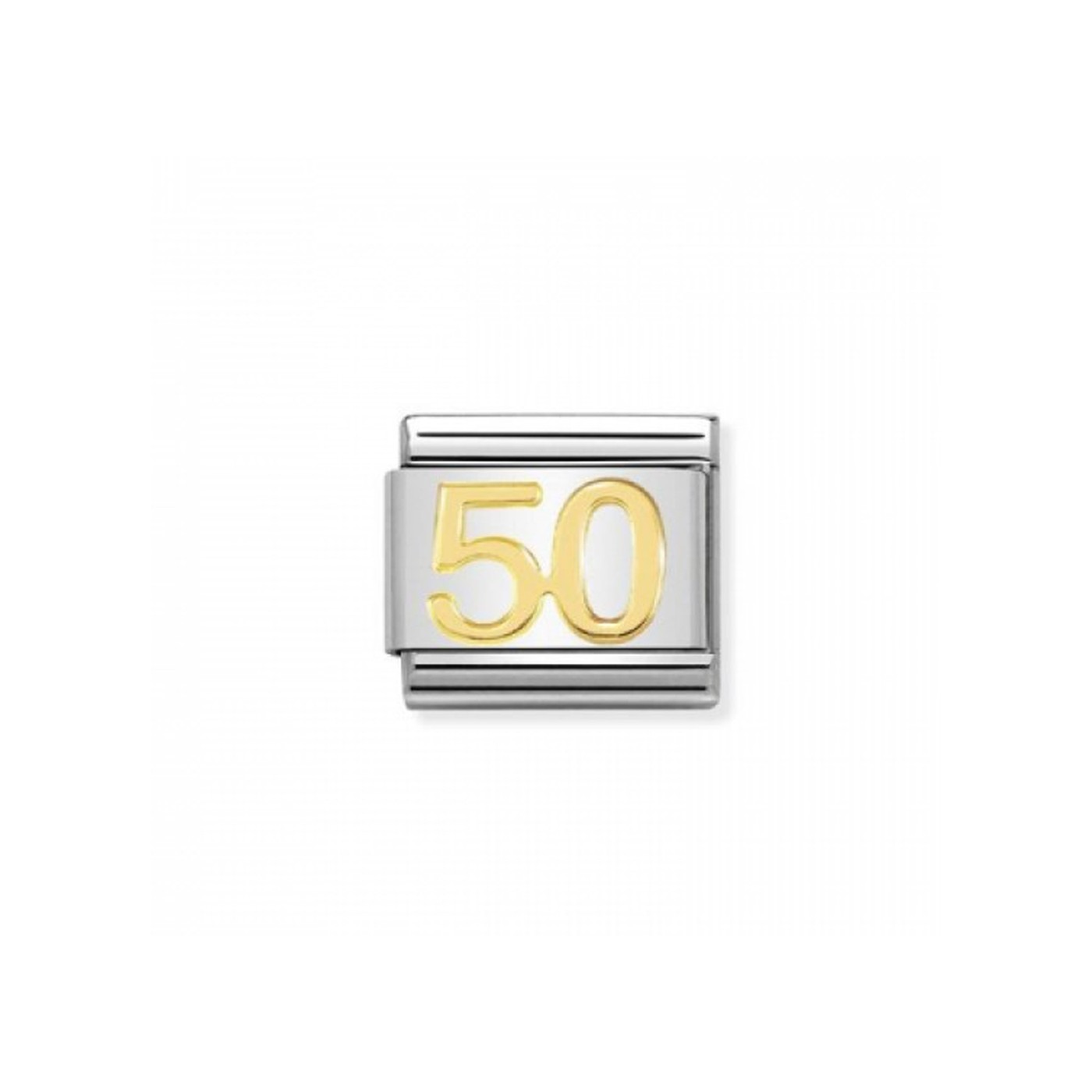 Pulsera Composable Classic original Nomination en Acero y número 50 en Oro 750. Made in Italy. Un hito importante se merece una pulsera importante.