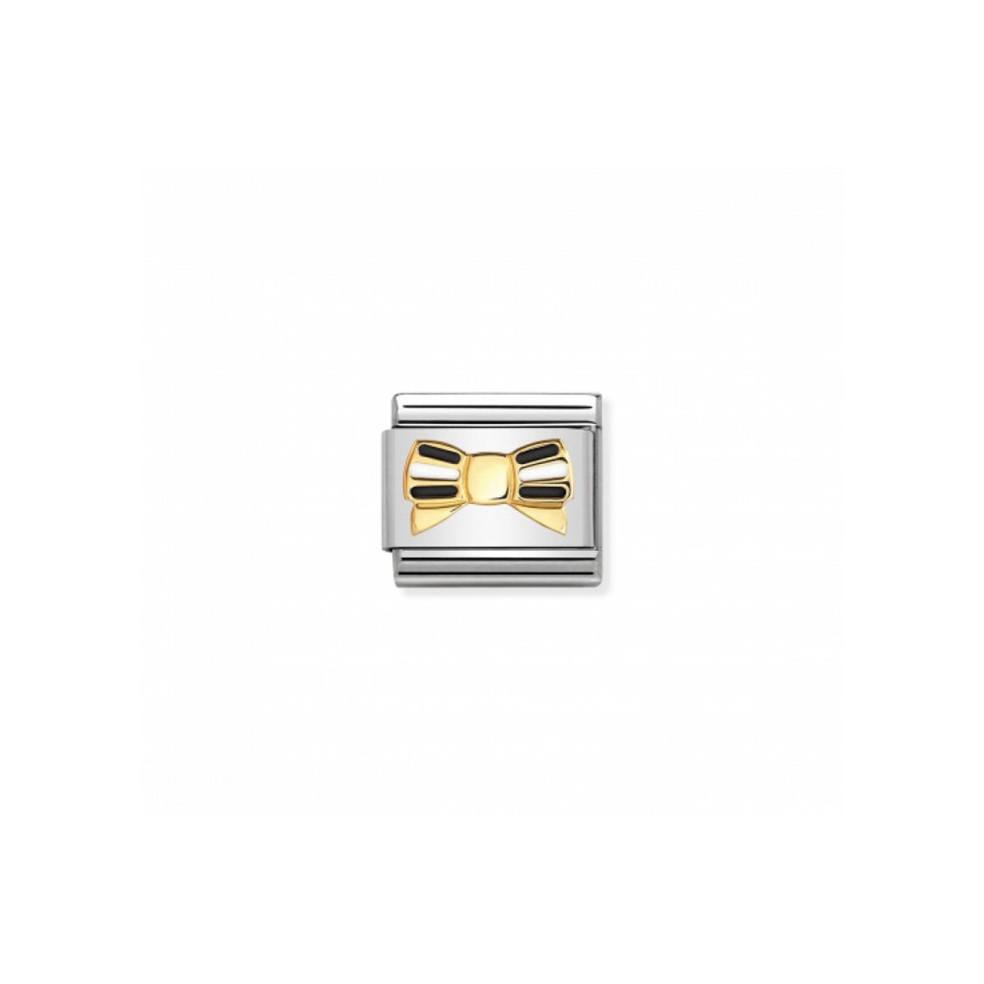 Charm original para la Pulsera Composable Classic de Nomination en acero y oro 18K. Lazo con Rayas negras y blancas en Esmalte. Pieza de la Colección Composable "Glitter Nights". Made in Italy. ¡El regalo perfecto para tu amigo más fashion!
