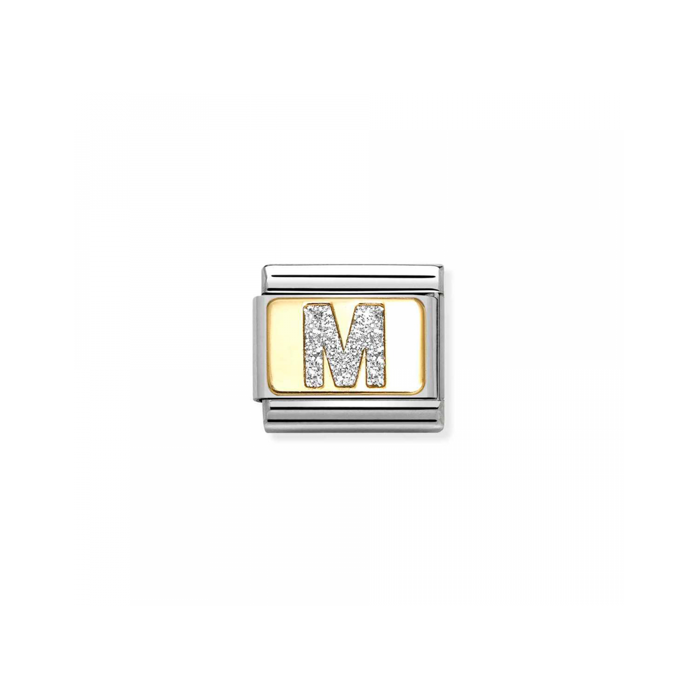 Link Nomination Acero y Oro Letra "M" Glitter 030291 13 es el abalorio pandora perfecto para quienes desean llevar consigo la inicial de alguien especial o la suya propia. Su diseño combina acero y oro con un toque de glitter, ideal para destacar en cualquier pulsera. Regálalo a esa persona cuyo nombre empieza con "M" o a quien quiera llevar un símbolo personal lleno de significado.