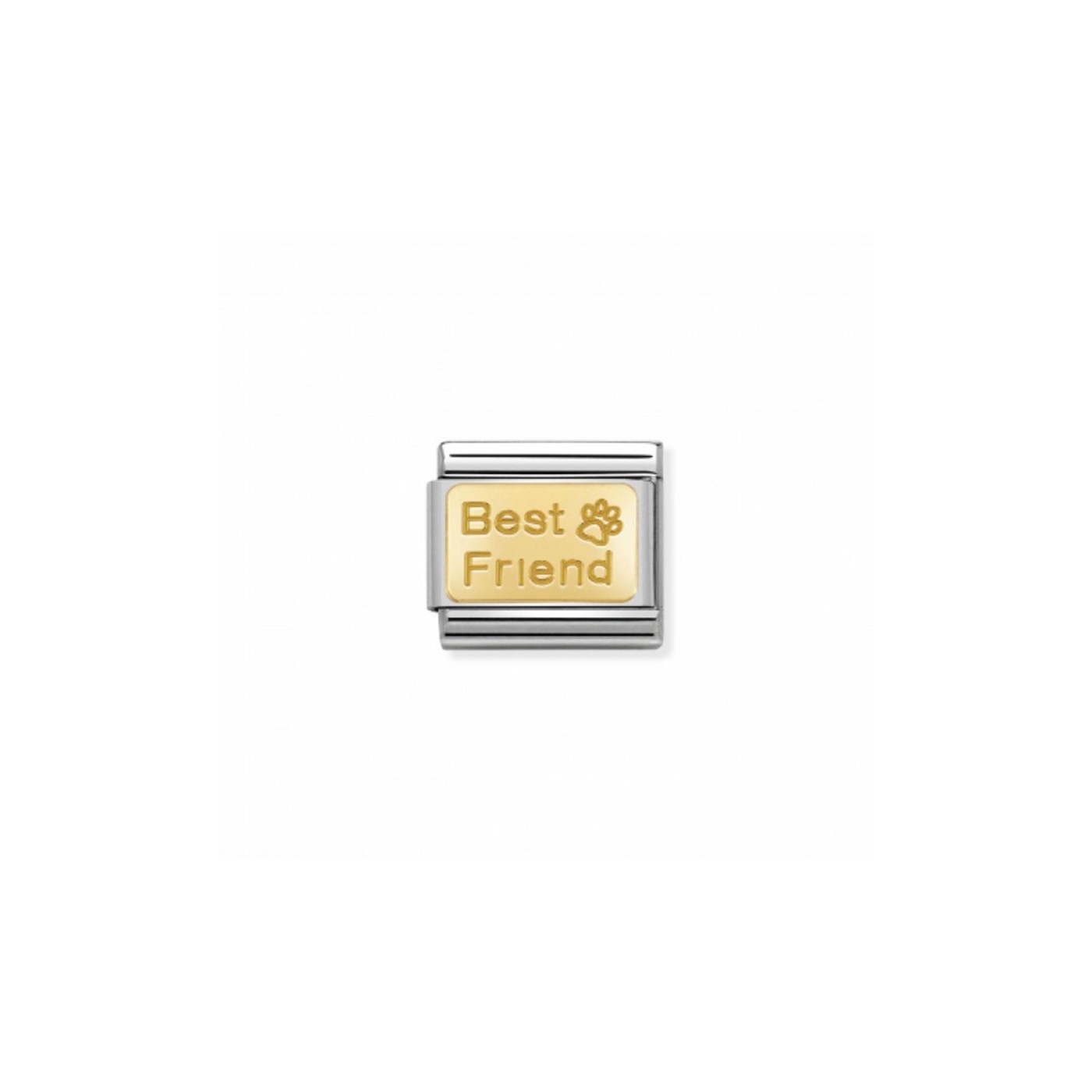 Pieza para Pulsera Componible Original Classic Nomination con huella y texto en inglés "Best Friend" en acero y Oro 750. Made in Italy. Lleva siempre contigo la huella de tu mejor amigo.