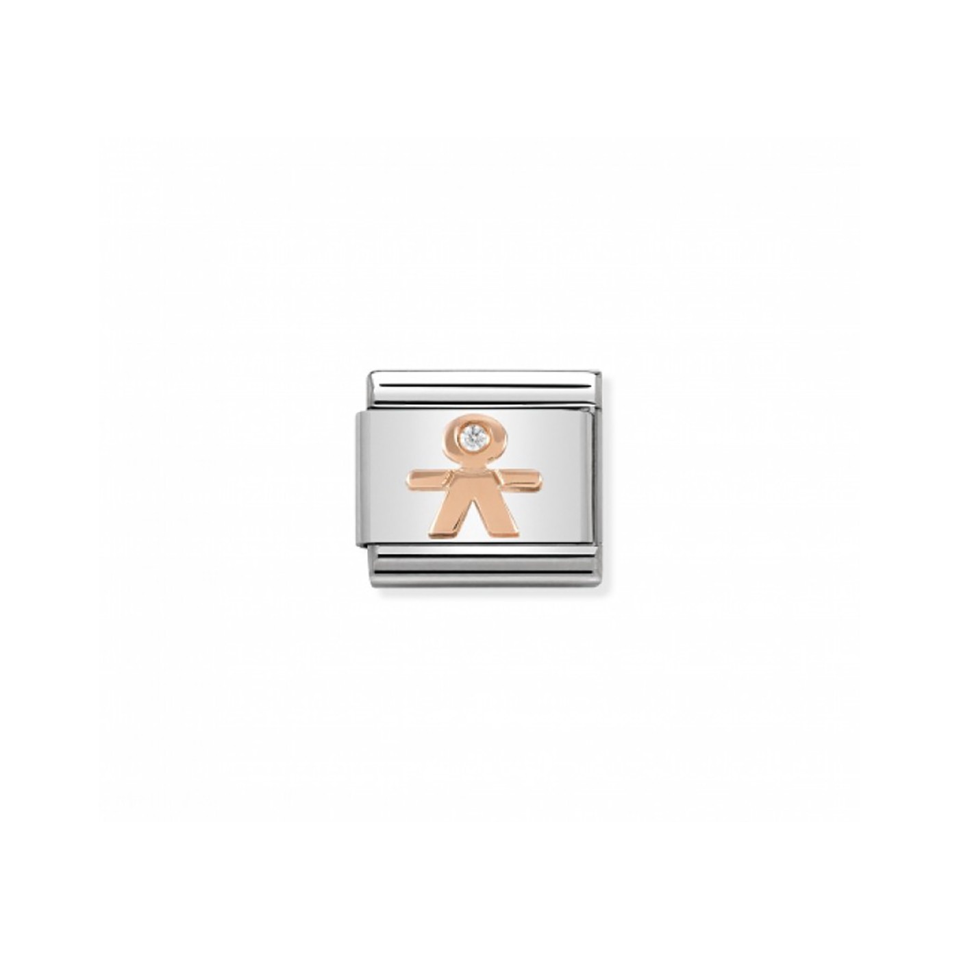 Pieza en Acero para Pulsera Componible Original Classic con símbolo de Niño en Oro Rosa 375 y Circones Cúbicos blancos. Los niños, los favoritos de mamá. Made in Italy.