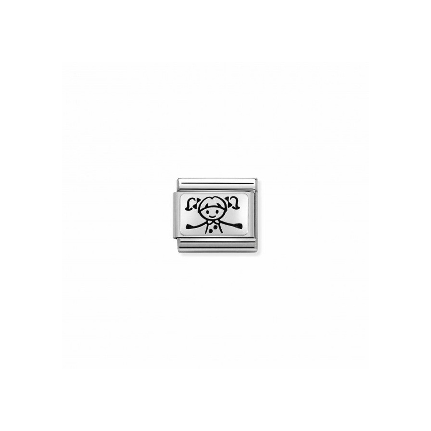 Link Nomination para Pulsera Composable Classic en Acero y Plata 925 con símbolo de Niña. Made in Italy. Crea una pulsera con toda la familia.