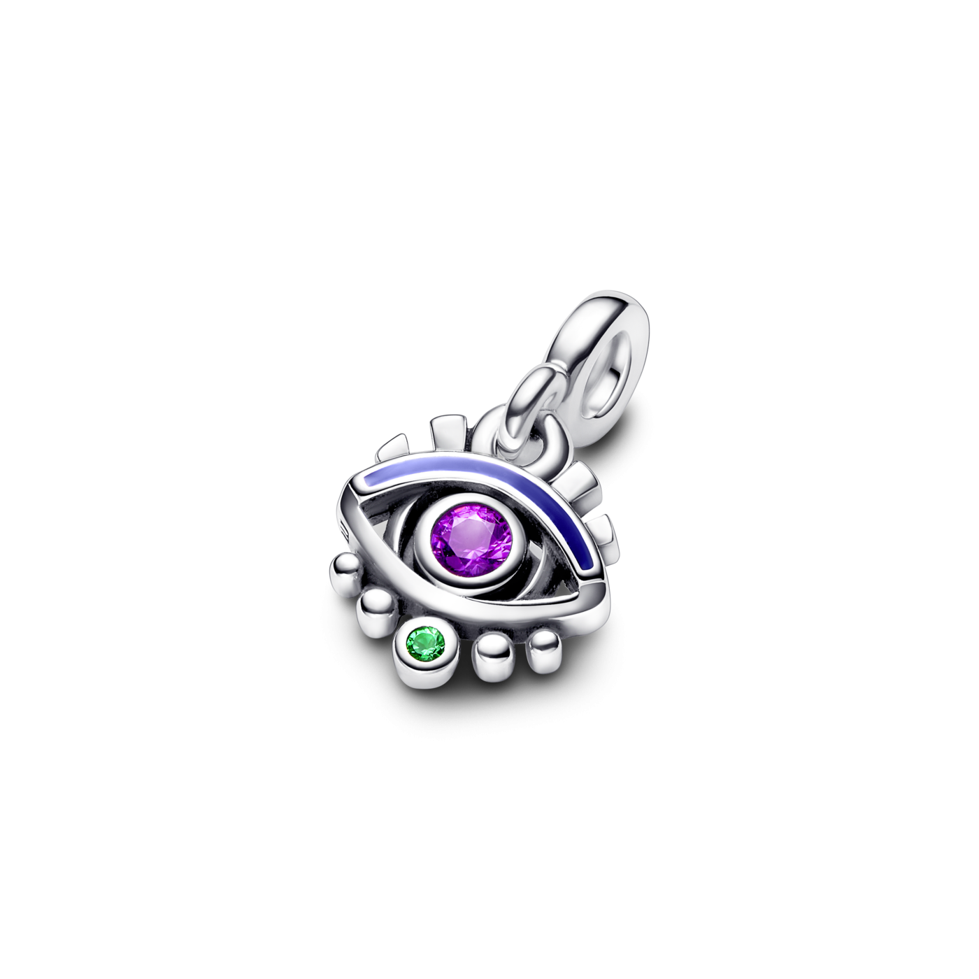 Mini Colgante Ojo plata Pandora Me 792295C01: un abalorio pandora en plata de ley con cristal morado y verde y esmalte azul, perfecto para quienes buscan protección y buena energía en su día a día. Regálalo a esa persona especial que valora los símbolos de cuidado y espiritualidad, y haz que lleve siempre consigo un amuleto lleno de significado.