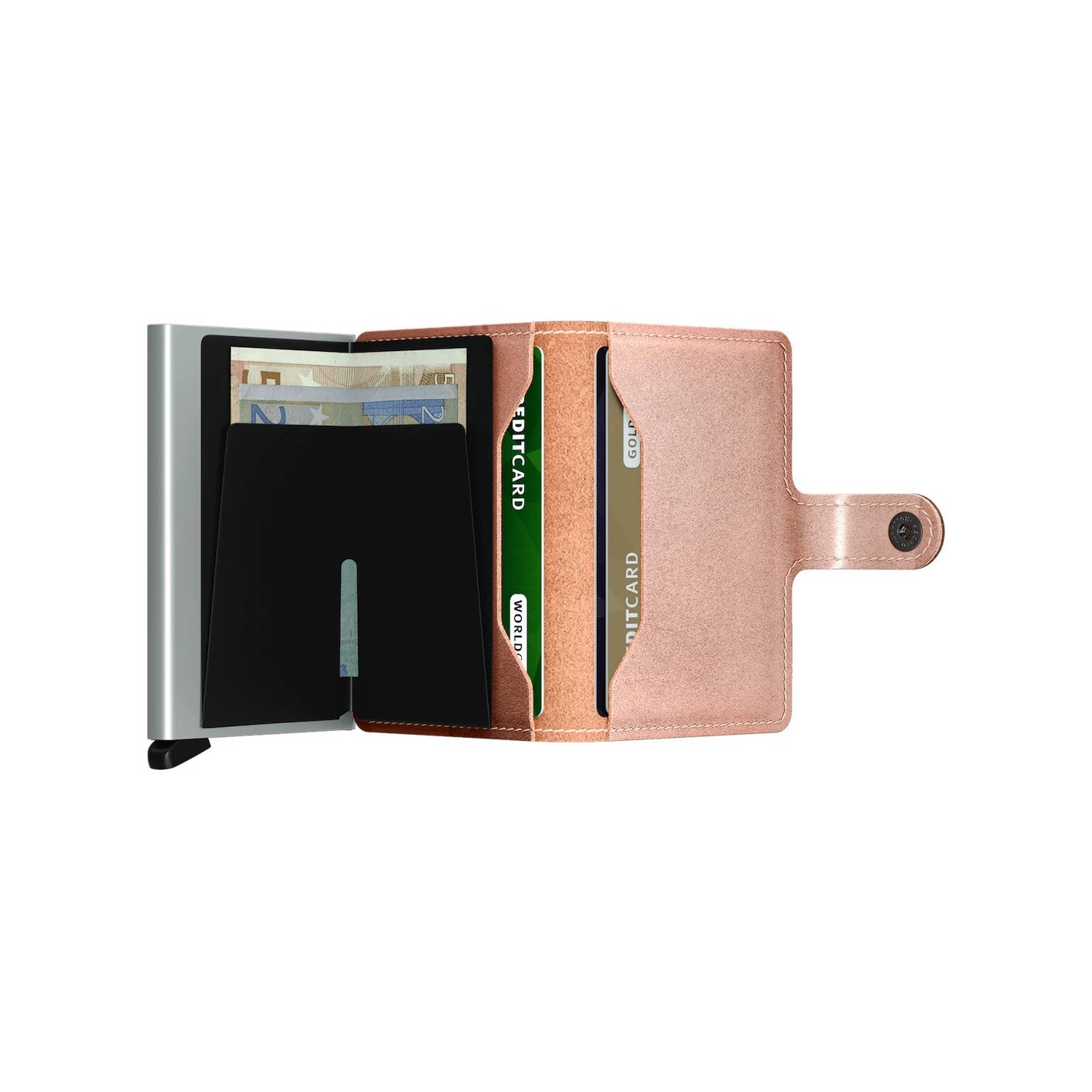 Elige Miniwallet Metallic Rose y lleva todo lo que necesitas, siempre protegido y con un toque de color único.