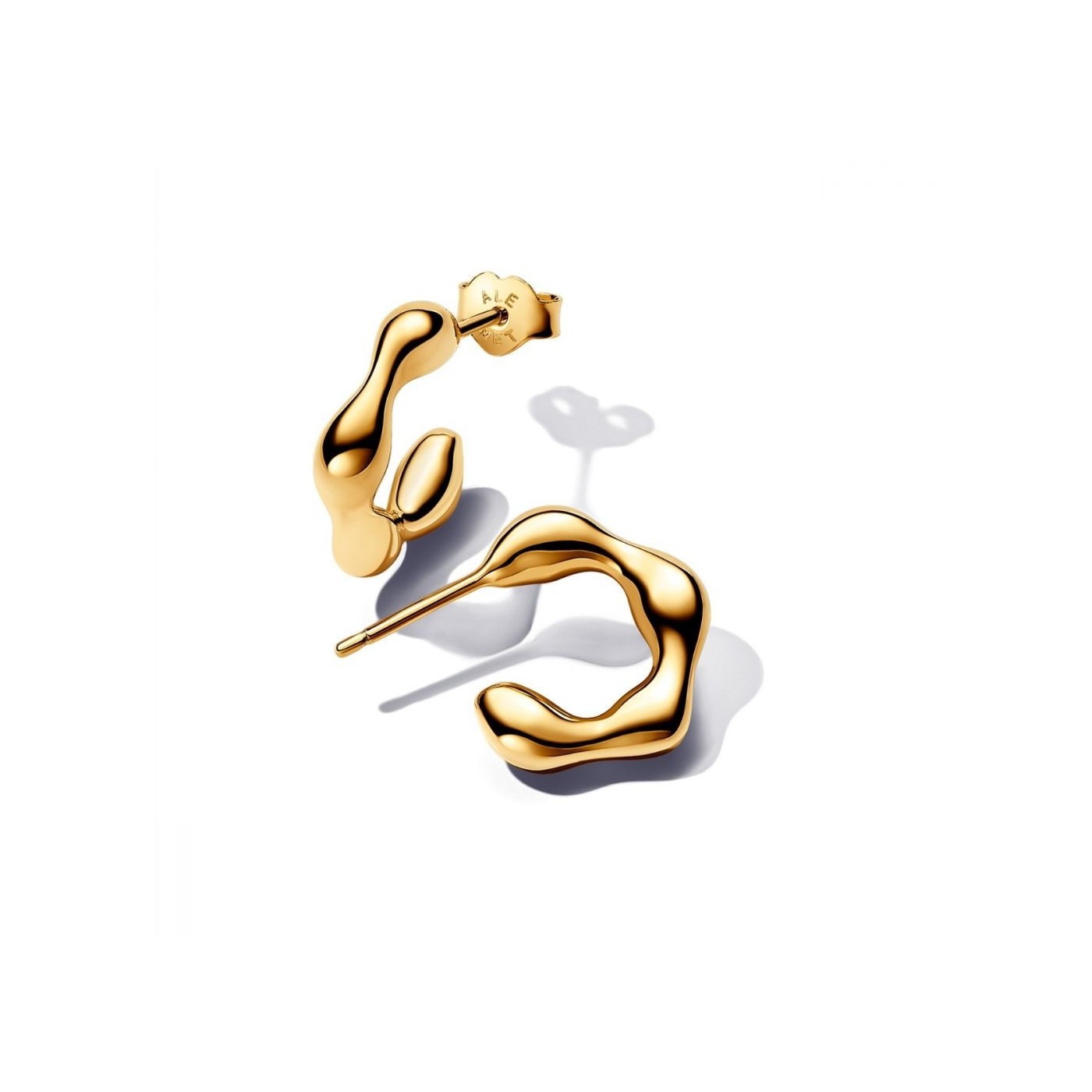 Pendiente Pandora de Aro Forma Orgánica Baño Oro 14 KT 263269C00: un diseño elegante y moderno que resalta tu estilo único. Su forma orgánica y el brillo del baño de oro de 14 quilates lo convierten en el complemento perfecto para quienes buscan destacar con sofisticación y originalidad. Es un regalo ideal para esa persona especial que aprecia la belleza de lo natural y la autenticidad en cada detalle.