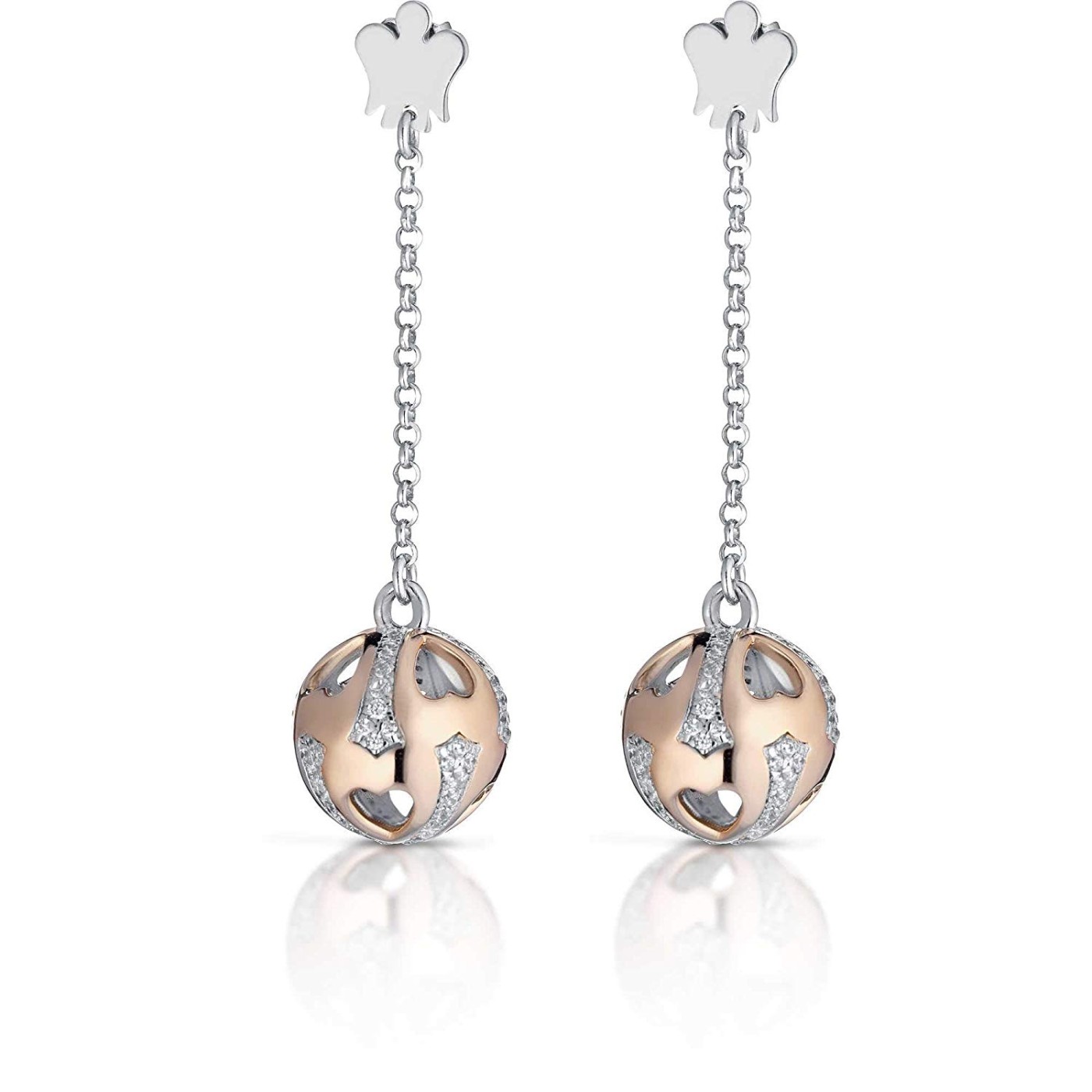 PENDIENTES CON ÁNGELES LLAMADOS EN PLATA ROSA, ZIRCONAS BLANCAS Y ÁNGEL EN PLATA, LONGITUD PENDIENTE TOTAL 5 CM, BOLA DE DIÁMETRO 1.3 CM, ÁNGEL: BASE 0.7 CM - ALTURA 0.8 CM