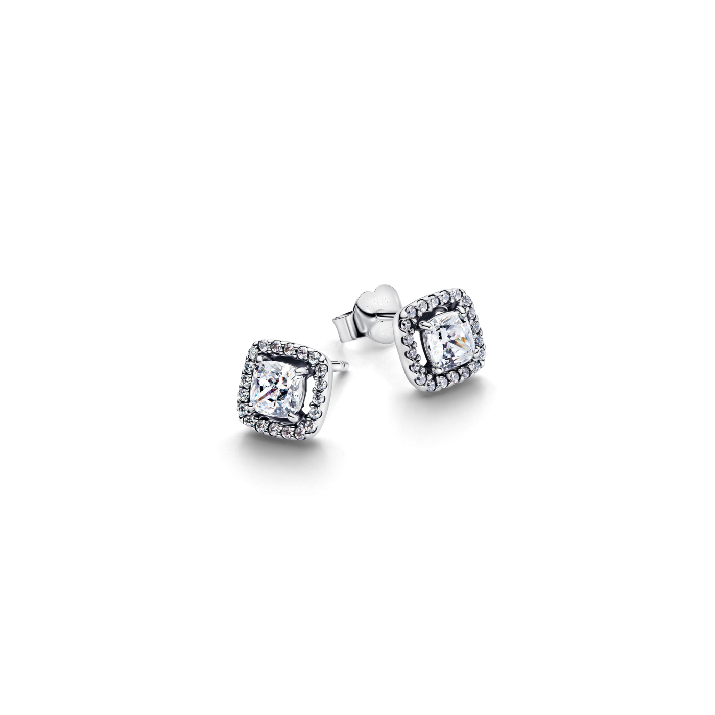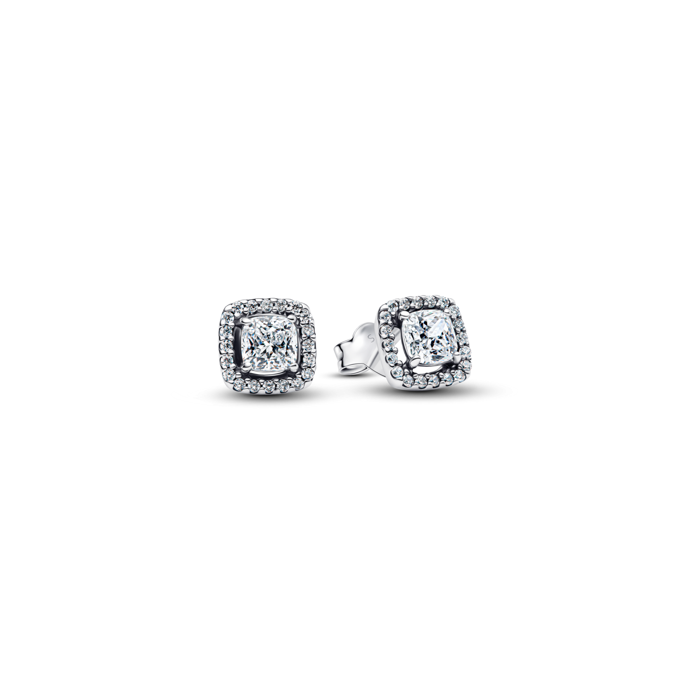 Pendientes Pandora de botón en plata de ley Halo Cuadrado Brillante 293551C02
