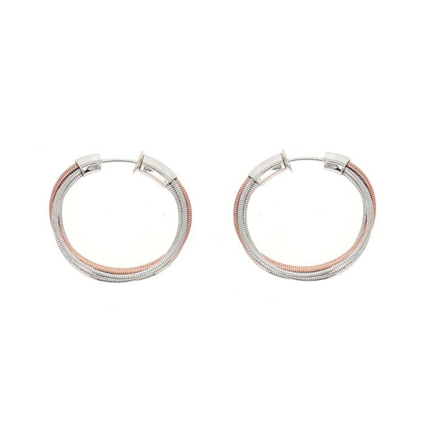 Pendientes Pesavento DNA WDNAO221, una joya que destaca por su diseño moderno y elegante. Fabricados en plata de ley, estos pendientes combinan siergas bañadas en oro rosa y rodio, creando un contraste sofisticado y único. Perfectos para quienes buscan un toque especial en su día a día o para ocasiones especiales. Atrévete a lucir un estilo diferente con Pesavento.