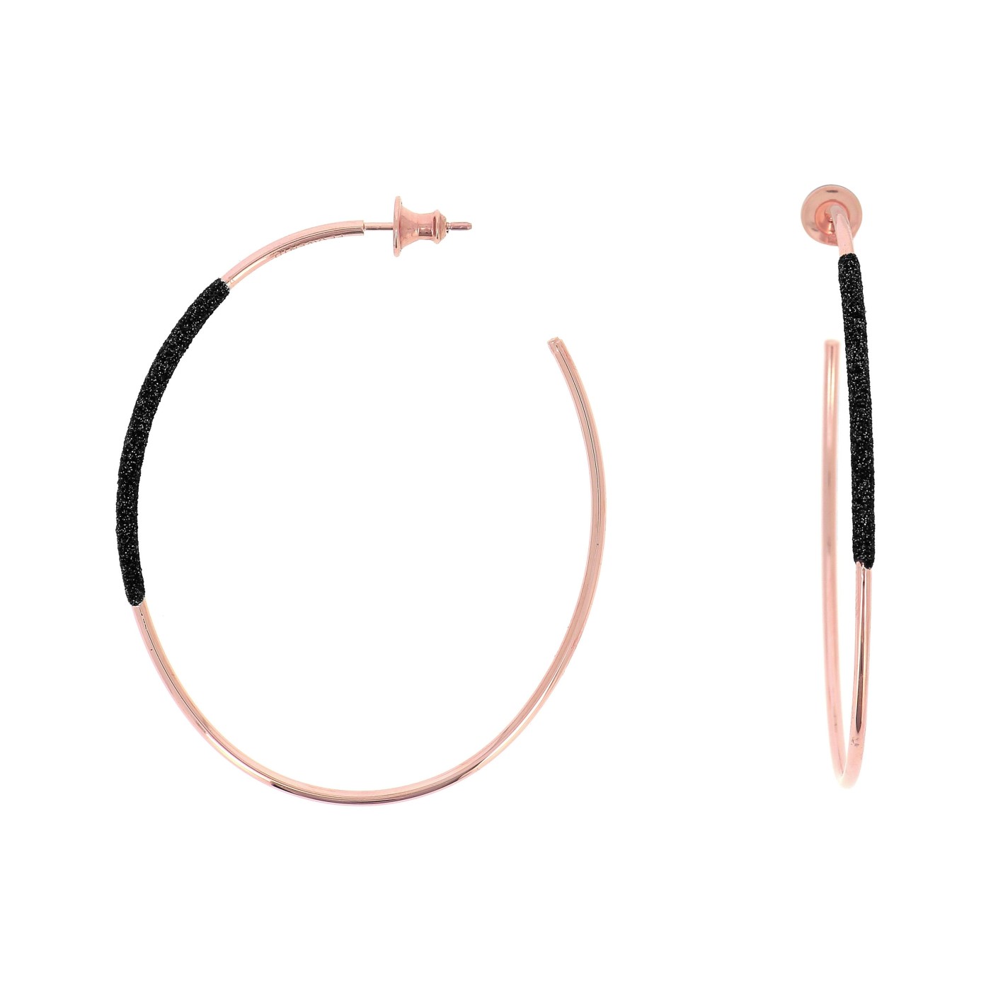 Pendientes Pesavento con forma de aro. Estan fabricados en plata de ley con baño de oro rosa, de la colección Polvore di Sogni con polvo de carbono negro WPLVO1139