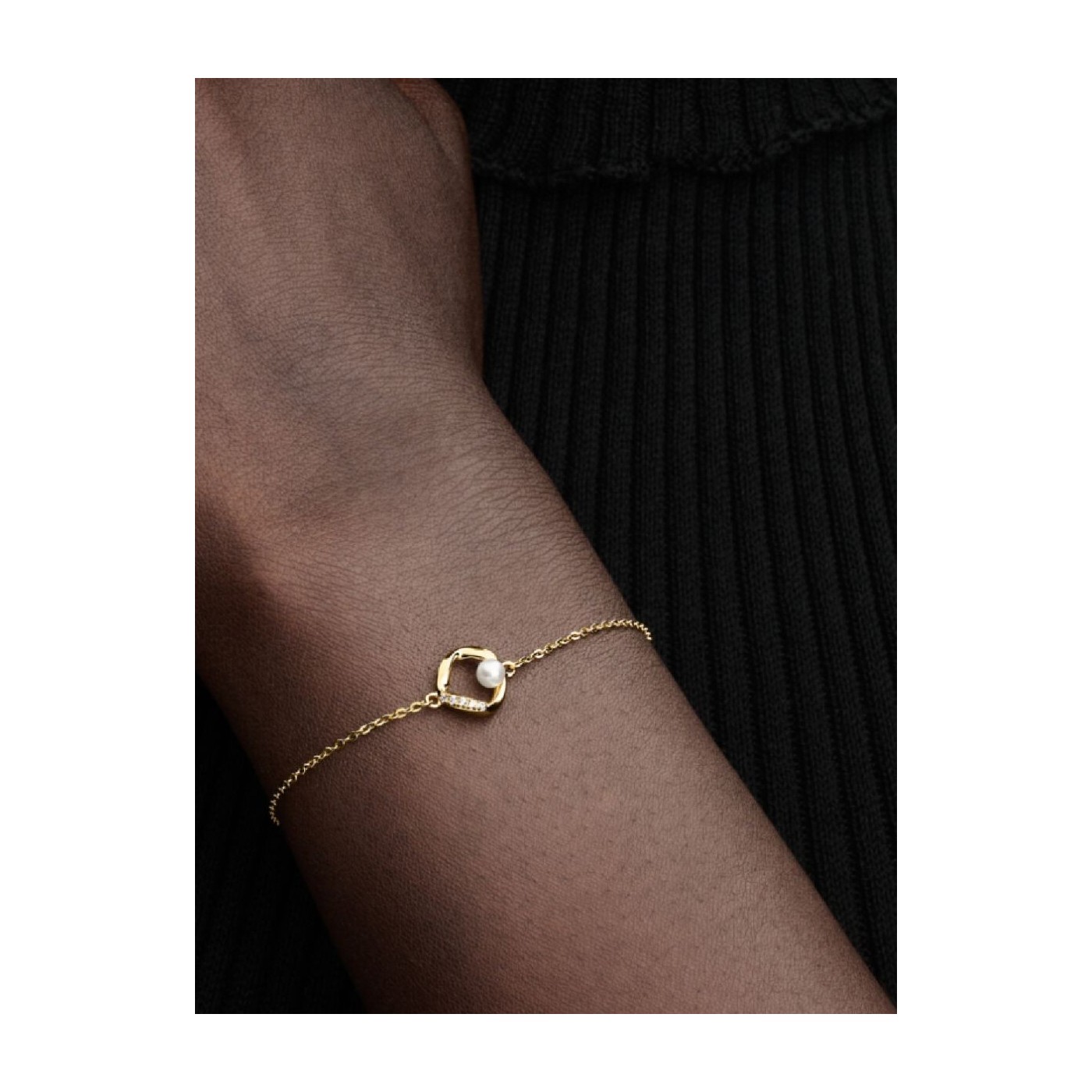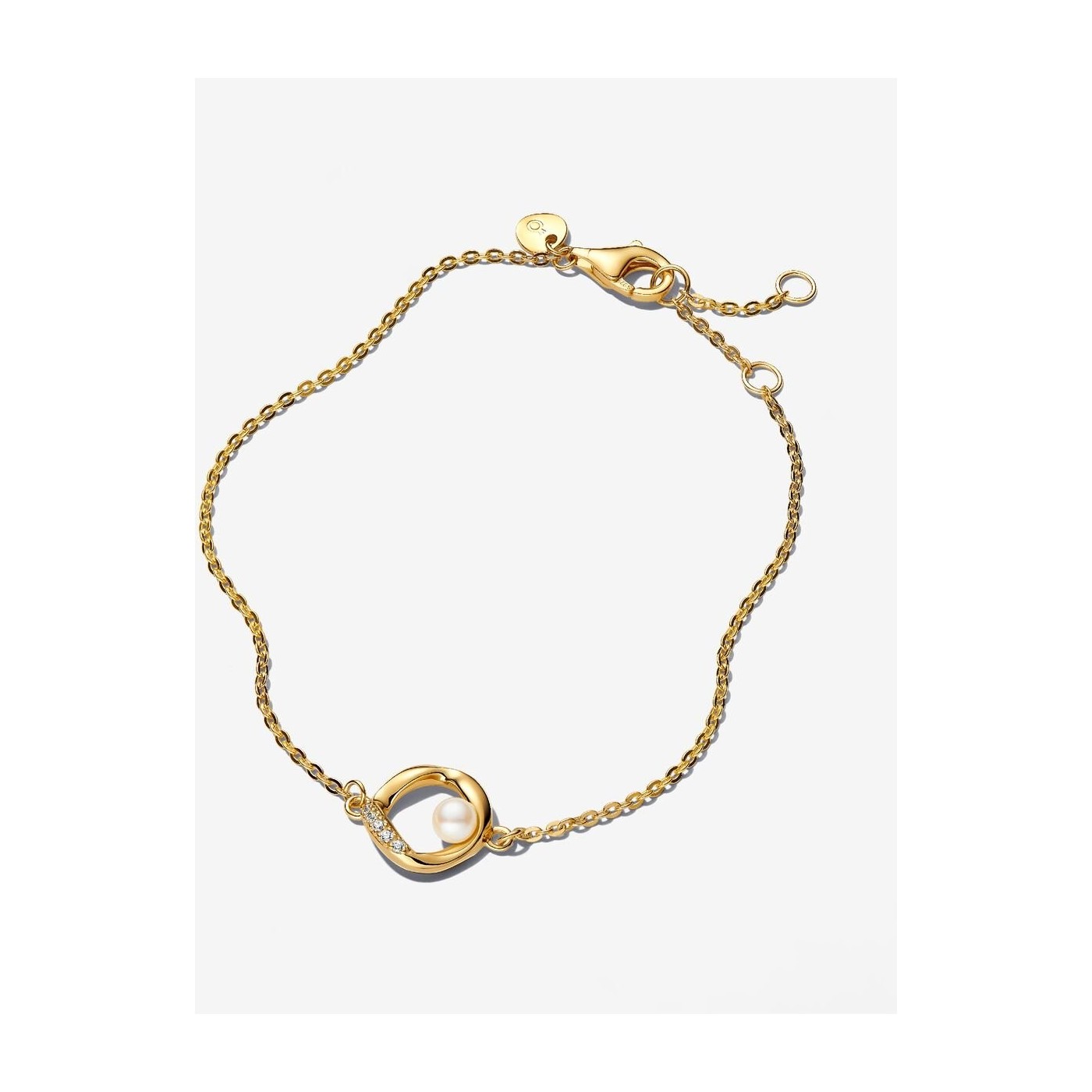 Pulsera Pandora Dorada Circulo Forma Organica Pavé y Perla 563830C01