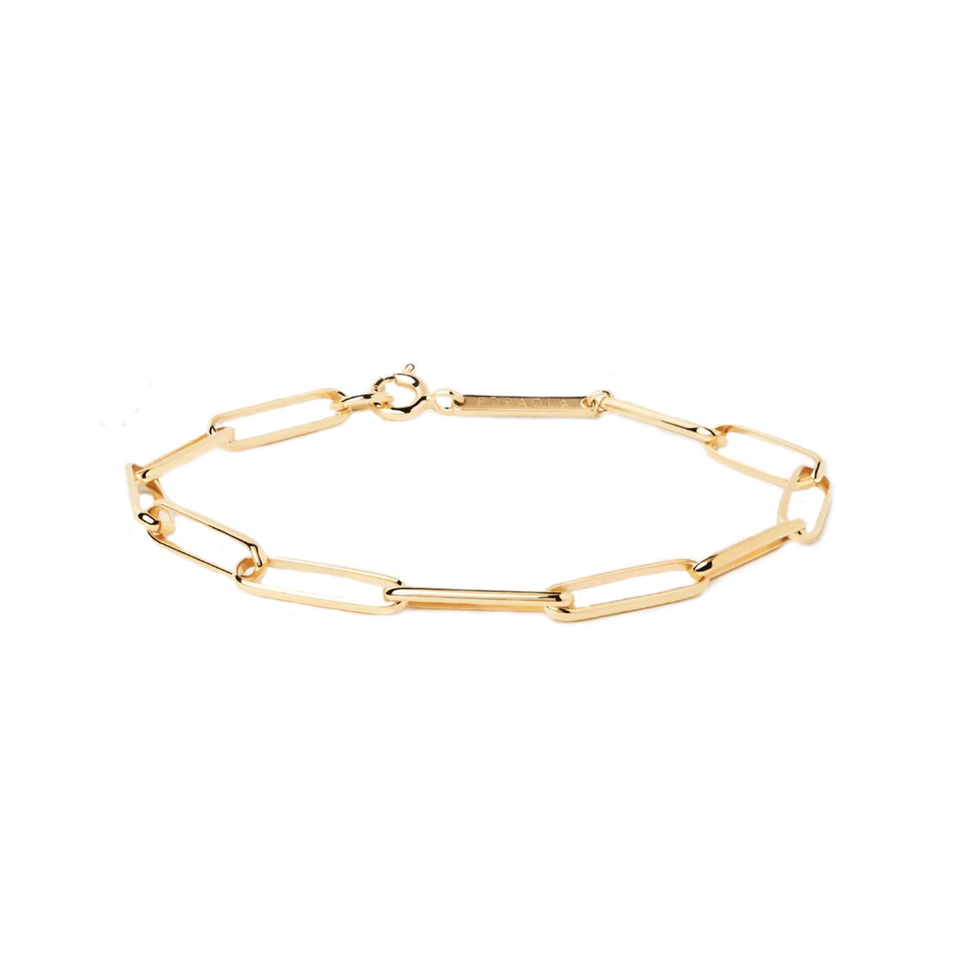 Pulsera PdPaola Cadena Big Statement PU01-400-U: una pieza de plata de ley con baño IP dorado que destaca por su diseño moderno y elegante. Sus eslabones grandes de 16,5mm x 4mm y una longitud total de 18cm la convierten en el complemento perfecto para quienes buscan un estilo sofisticado y actual. Ideal para llevar sola o combinar con otras pulseras y crear un look único cada día.