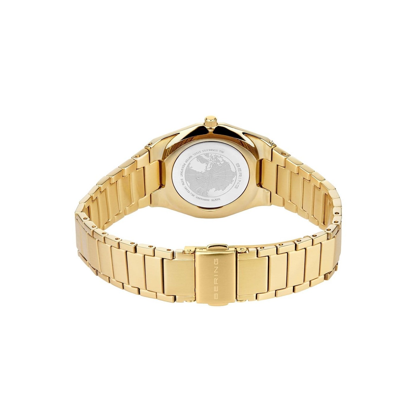 El cristal de zafiro plano protege la esfera y garantiza una claridad duradera. La pulsera de acero inoxidable dorado con cierre desplegable se integra perfectamente en el diseño, ofreciendo comodidad y estabilidad.