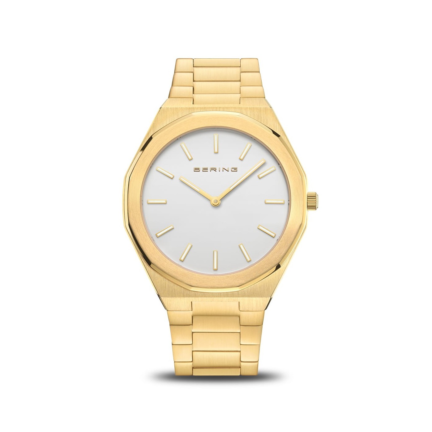 Minimalismo con elegancia: este reloj para hombre de la colección BERING Classic representa una sofisticación discreta. La caja de acero inoxidable en dorado cepillado y pulido ofrece un diseño geométrico refinado, fiel al estilo escandinavo donde la simplicidad se convierte en lujo.