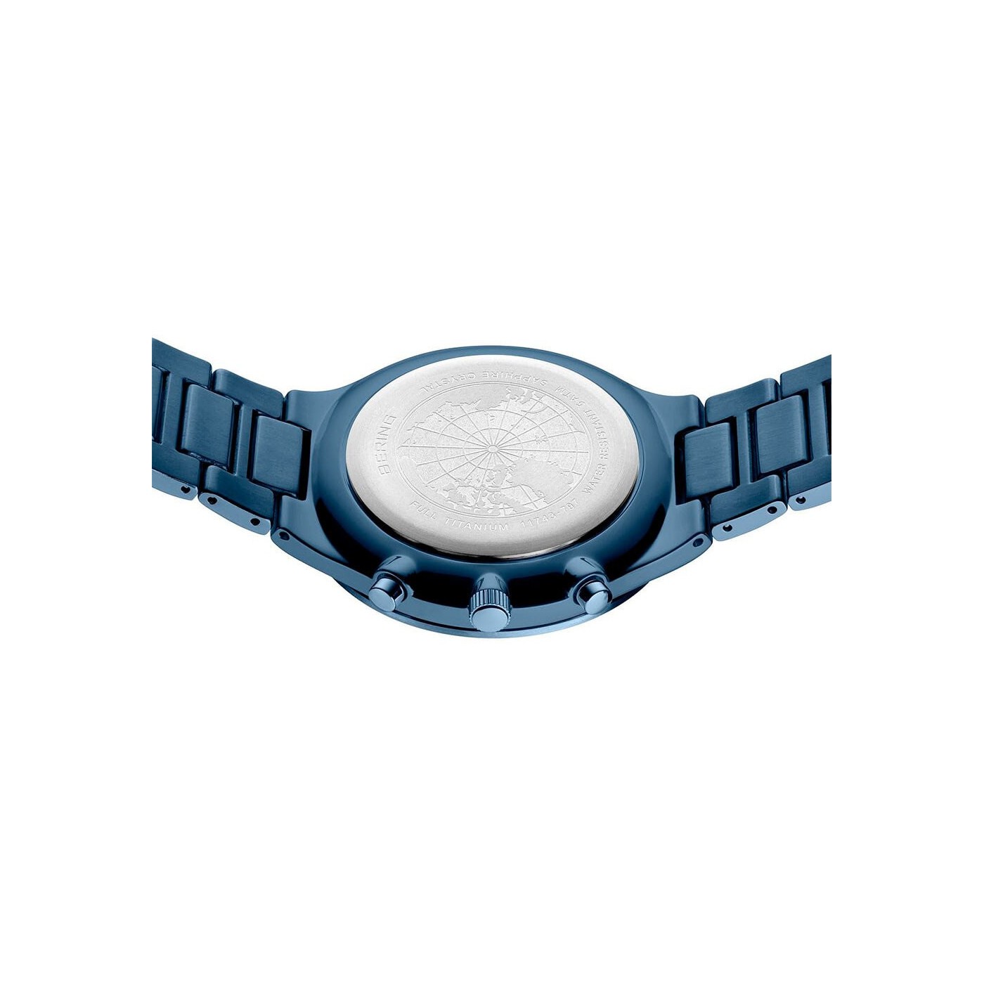 El Reloj Bering Titan Crono 11743-797 combina elegancia y funcionalidad en un diseño ultraligero gracias a su fabricación en titanio hipoalergénico. Su acabado en azul mate y los detalles en naranja alrededor de la esfera aportan un toque actual y juvenil.