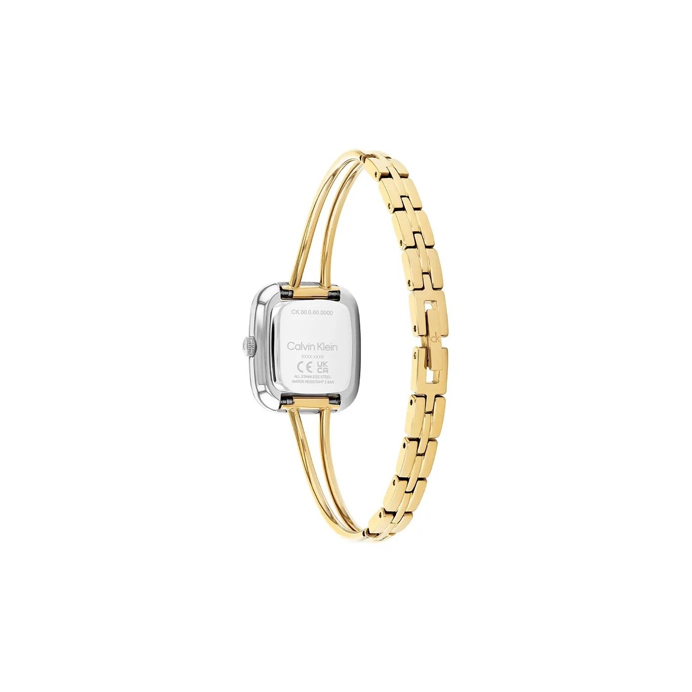 Este reloj marca Calvin Klein tiene una caja de Inox con un diámetro de 21 mm y cuenta con una correa de acero con baño ip dorado. Dentro de la caja se encuentra un mecanismo de Seiko Instruments Inc. de alta calidad el cual esta protegido por un cristal Mineral.