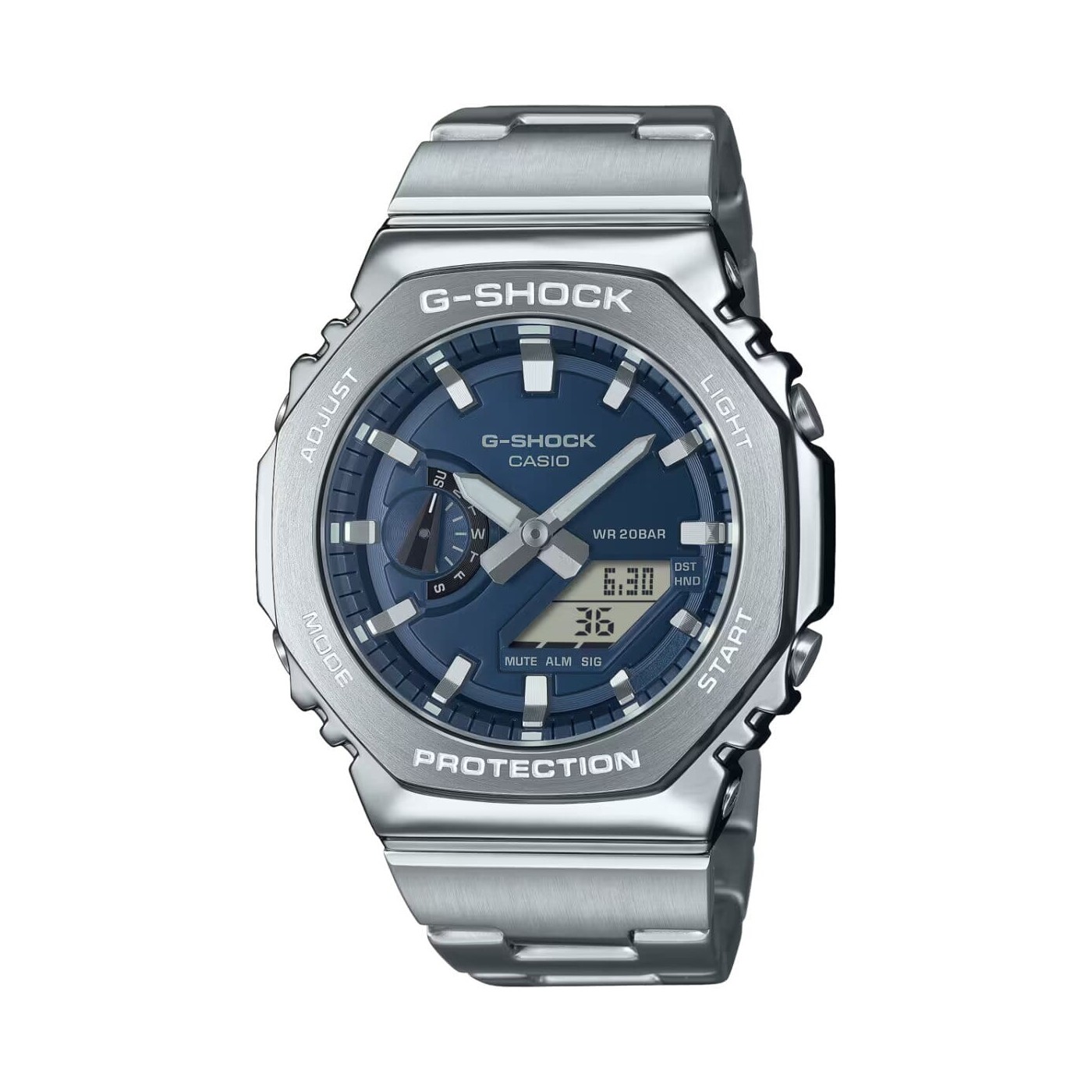 El Reloj G-Shock GM-2110D-2BER destaca por su bisel octogonal y armis de metal, que le dan un toque elegante y actual. El dial metálico, disponible en colores brillantes, aporta personalidad y sofisticación, ideal para quienes buscan un accesorio versátil para cualquier ocasión.