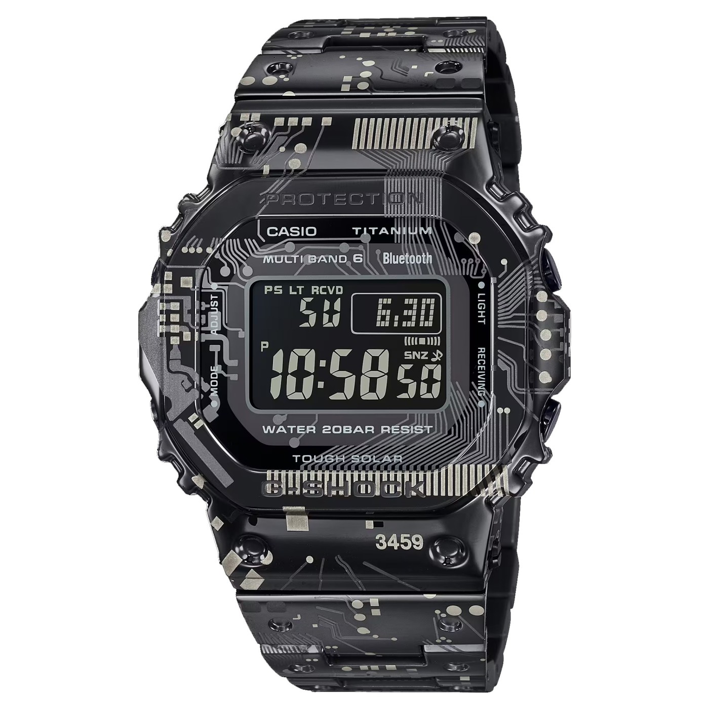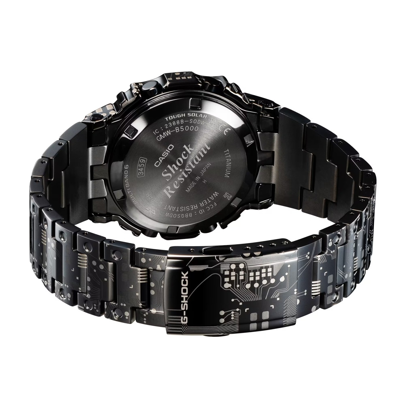 El G-Shock GMW-B5000TCC-1ER CIRCUIT CAMO DESIGN es la versión totalmente metálica del icónico G-SHOCK, ahora con un diseño de camuflaje único inspirado en los circuitos del módulo n.º 3459. Su acabado en titanio TranTixxii® y grabado láser le da un aspecto moderno, ligero y resistente, ideal para quienes buscan un reloj robusto y con estilo.