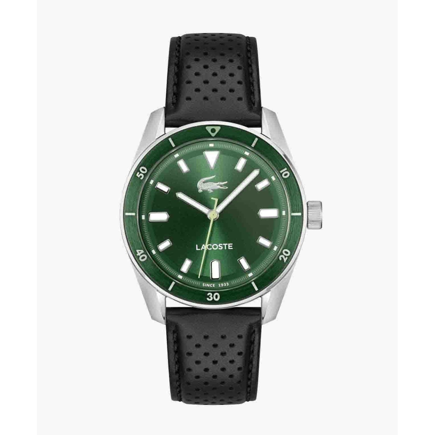 Una nueva versión del reloj Boston, ahora con tres agujas y esfera de aluminio para un toque moderno. Los sofisticados detalles de la marca Lacoste, como el cocodrilo metálico y el segundero en forma de L, crean un estilo audaz para cualquier ocasión.
