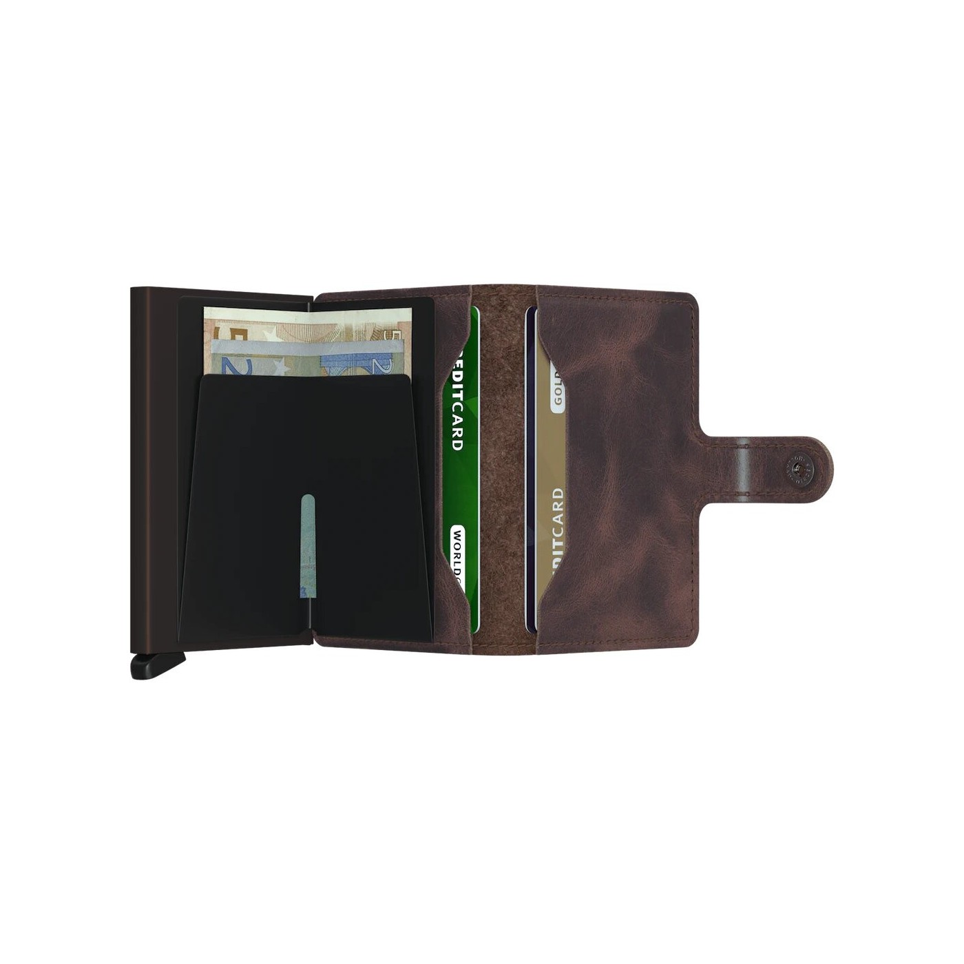 Elige Secrid Miniwallet Vintage Chocolate para llevar tus tarjetas y billetes de forma práctica, segura y con estilo.