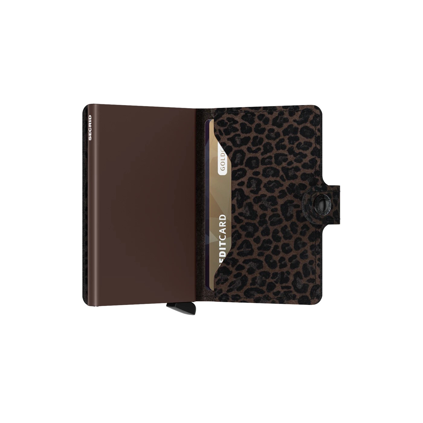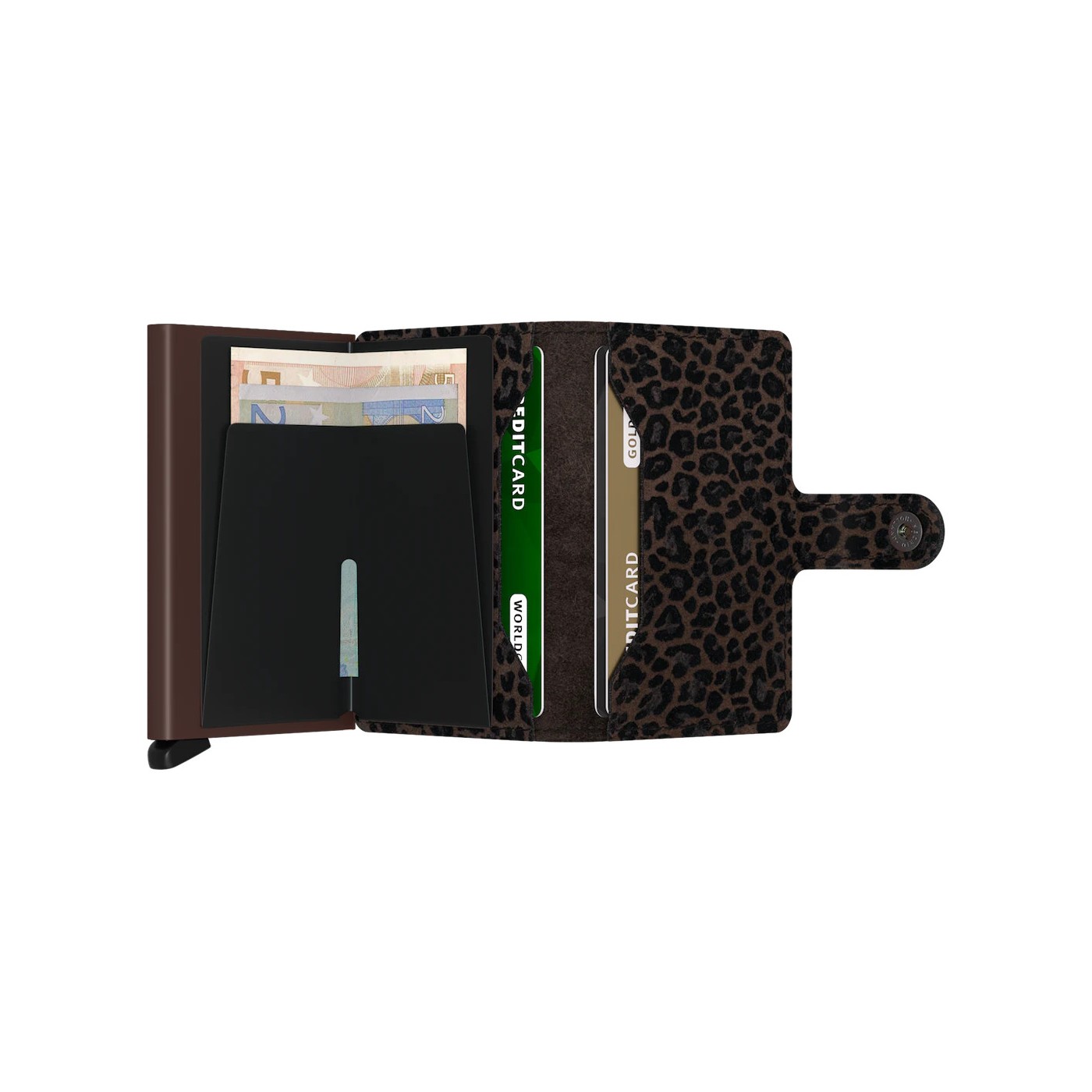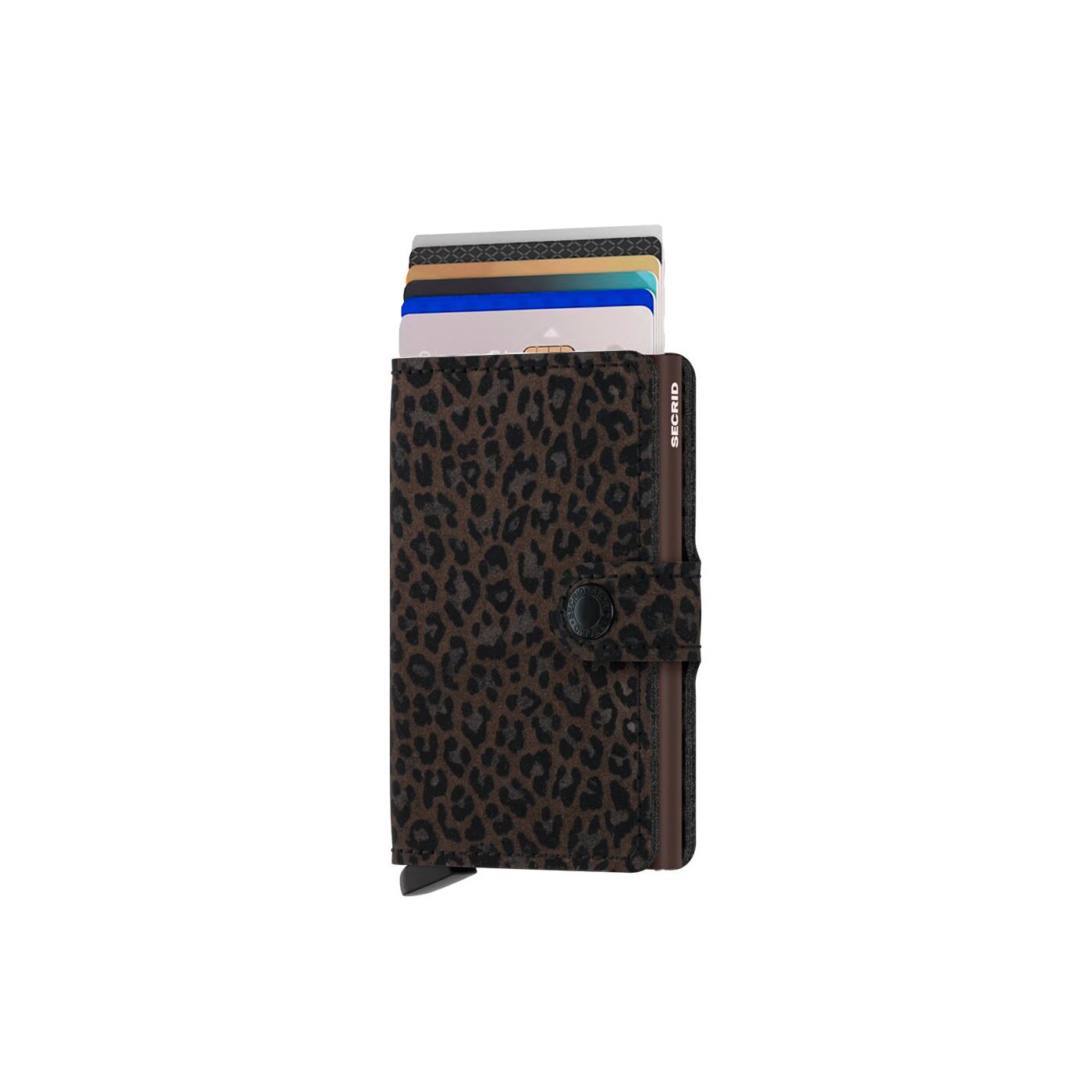 El Cardprotector de aluminio te permite extraer tus tarjetas con un simple movimiento, protegiéndolas de dobleces, roturas y lecturas no autorizadas. Su superficie destaca por el color característico y el discreto estilo que aporta el estampado animal print en relieve aterciopelado.