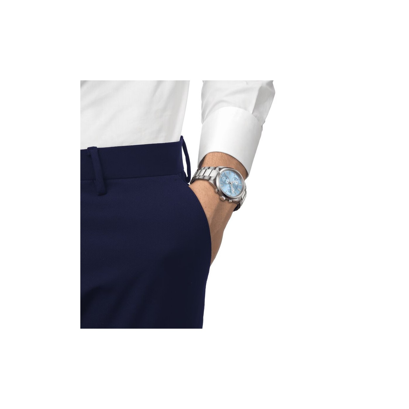 - Cristal de zafiro irrayable que protege la esfera azul hielo y mantiene el reloj impecable.